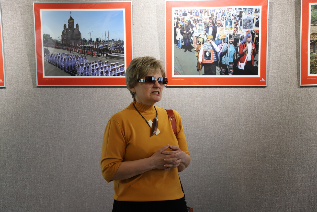 В экспозиции представлены фотографии члена Союза фотохудожников России Георгия Хрущева, на которых запечатлены кадры празднования во Владивостоке Дня Победы: военные парады, «Бессмертный полк», «солдатская каша», патриотические мероприятия.