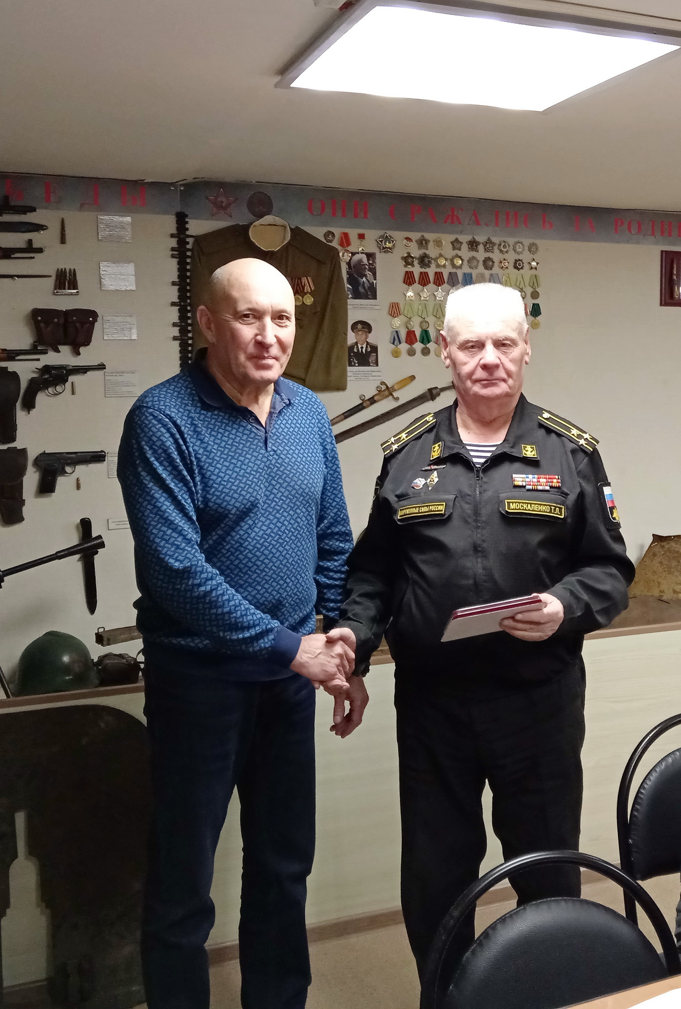 Председатель Совета ветеранов Виктор Потемкин поблагодарил ветеранов за большую военно-патриотическую работу с молодым поколением и поздравил всех с наступающим Новым годом.