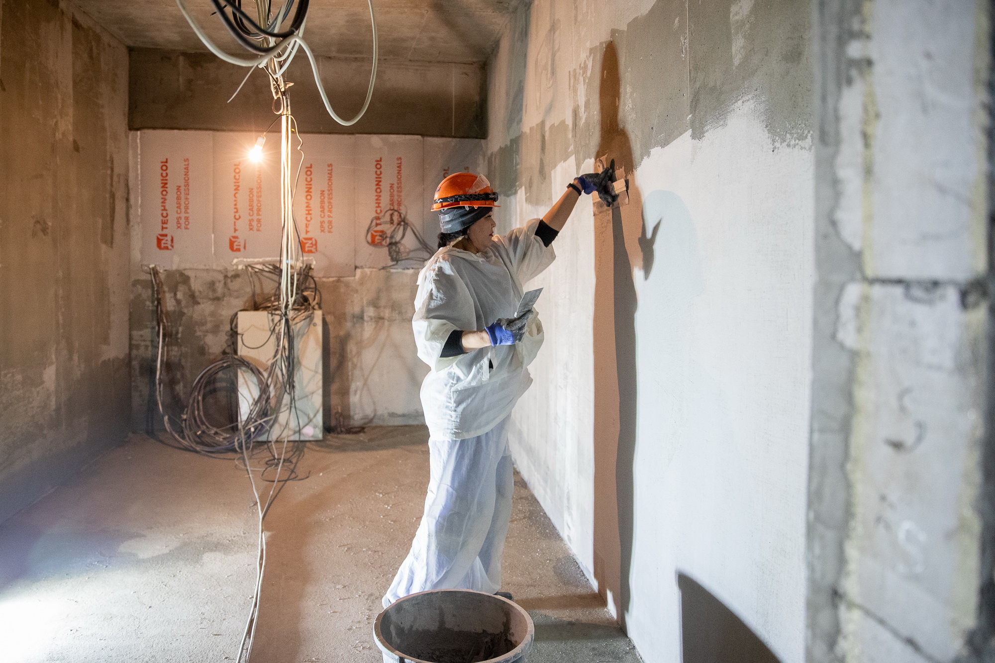 Как рассказывают строители, проведена большая работа: уже смонтированы корпуса, в завершающей стадии монтаж фасада, параллельно идут внутренние работы. Если в одних корпусах возводят внутренние перегородки, формируя будущие классы и другие помещения, то в других в самом разгаре оштукатуривание стен и финишная шпаклевка.