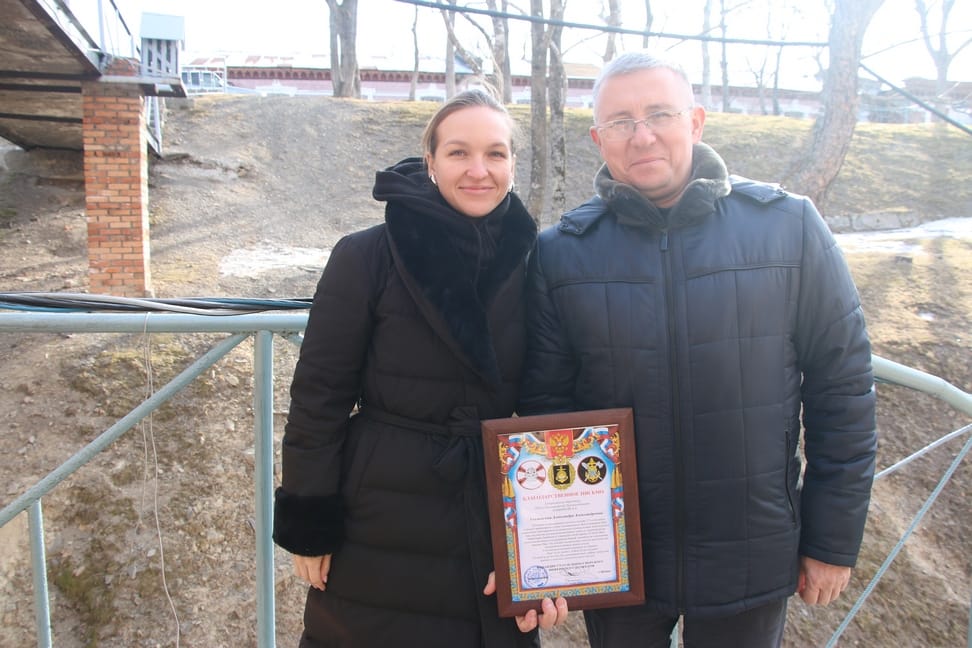 Педагог-организатор Татьяна Александрова вручила Благодарственное письмо структурного подразделения «ЦО «Вектор» председателю Думы города Владивостока Андрею Брику за оказанную помощь.