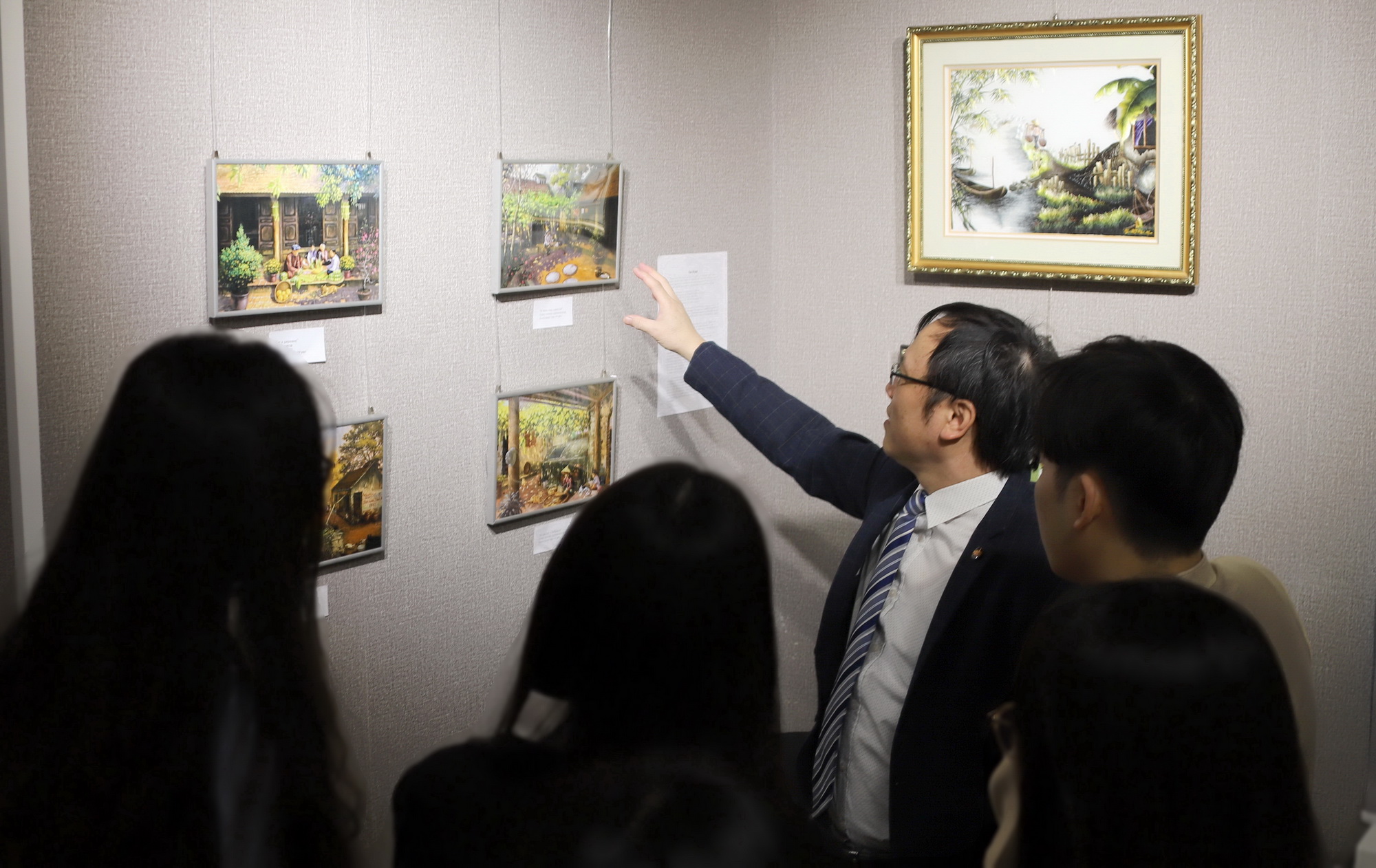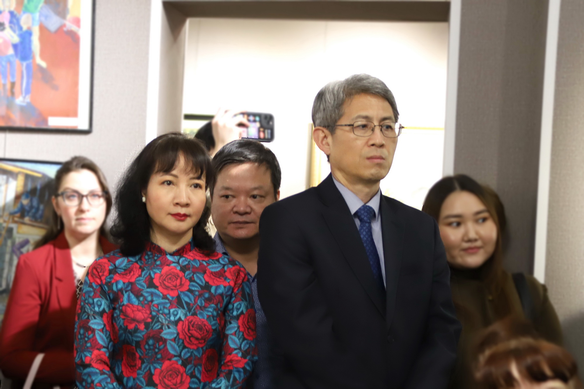 Андрей Брик уделил особое внимание художникам и фотографам из Социалистической Республики Вьетнам, приславшим на выставку свои картины и фотоработы, поблагодарил также вьетнамских студентов, проходящих обучение в ДВФУ, которые в качестве волонтеров принимали участие в презентации данных работ, рассказывали посетителям об авторах и выбранных ими сюжетах.