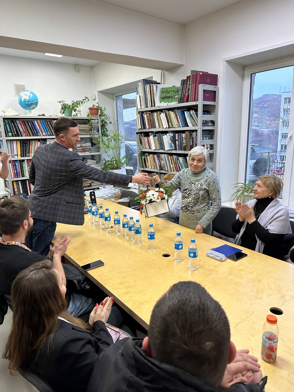 Предварительный проект благоустройства территории местным жителям представили на встрече в библиотеке № 16. Мероприятие провел депутат Думы города Владивостока Александр Бондяев.