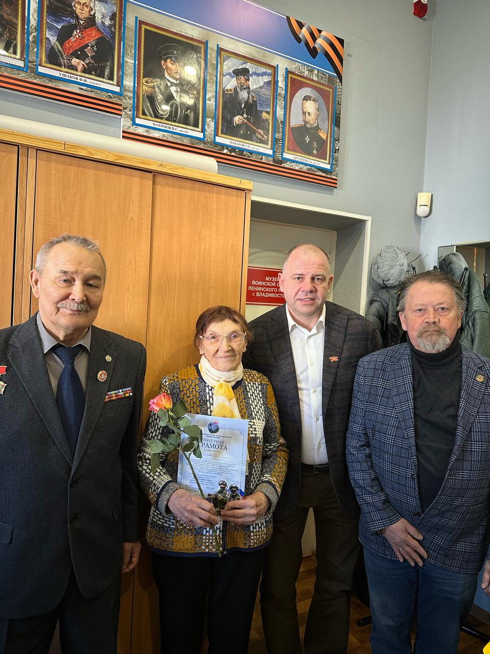 Депутат вручил почетные грамоты и цветы ветерану Великой Отечественной войны Лидии Ивановне Негода, членам Президиума совета ветеранов Галине Медведевой, Наталье Черновой, Людмиле Жосан, Татьяне Газиной, Галине Луговской.