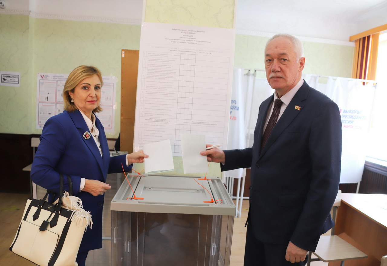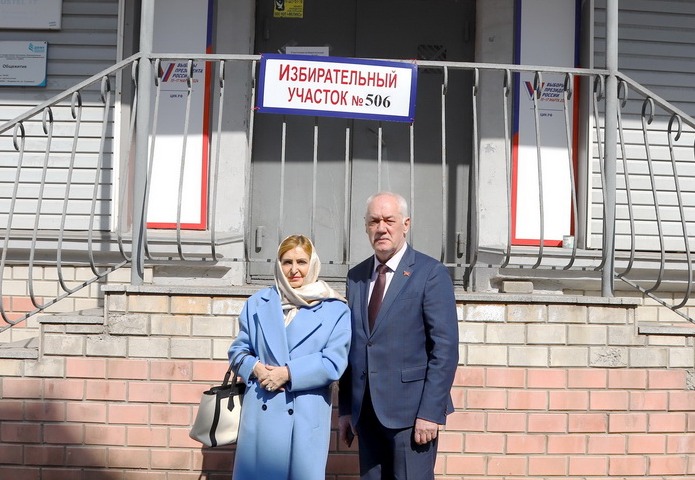 В первый день голосования по выборам Президента Российской Федерации председатель Думы города Владивостока Андрей Брик с супругой проголосовали на избирательном участке № 506