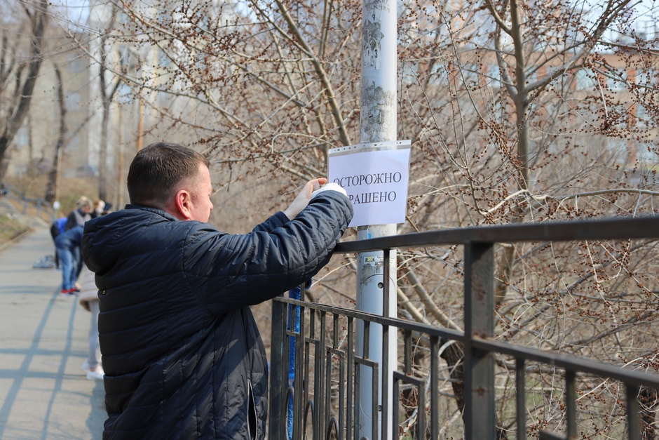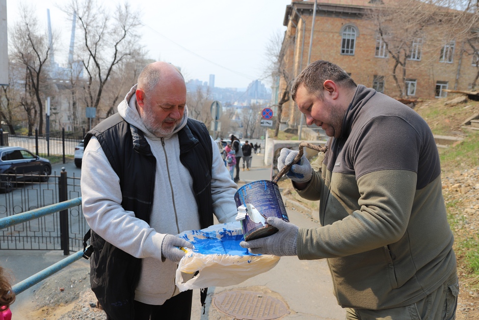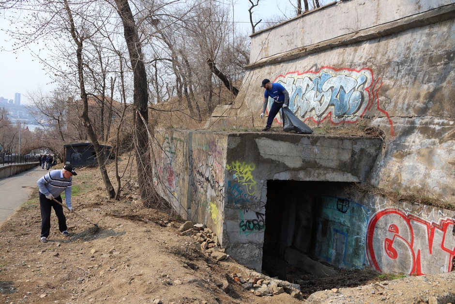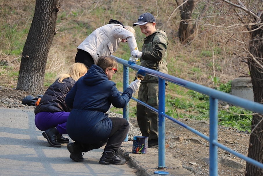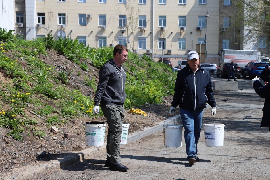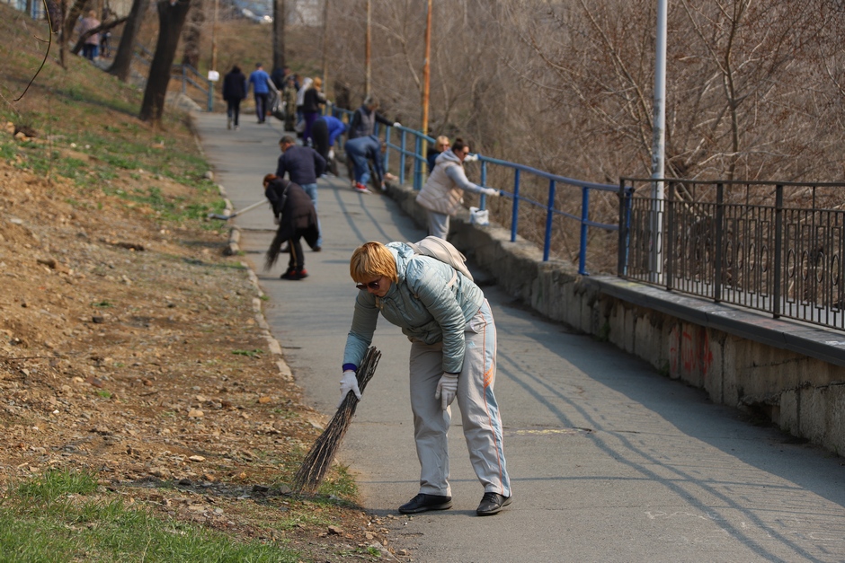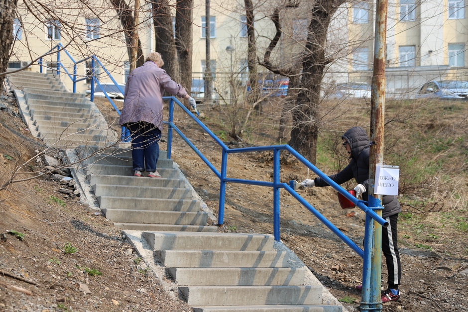 В ходе субботника депутаты и сотрудники аппарата убрали от мусора подземный пешеходный переход через улицу Суханова, лестницу и пешеходную дорожку, ведущие к Приморскому краевому драматическому театру имени Максима Горького, покрасили леерные ограждения, очистили прилегающий склон.