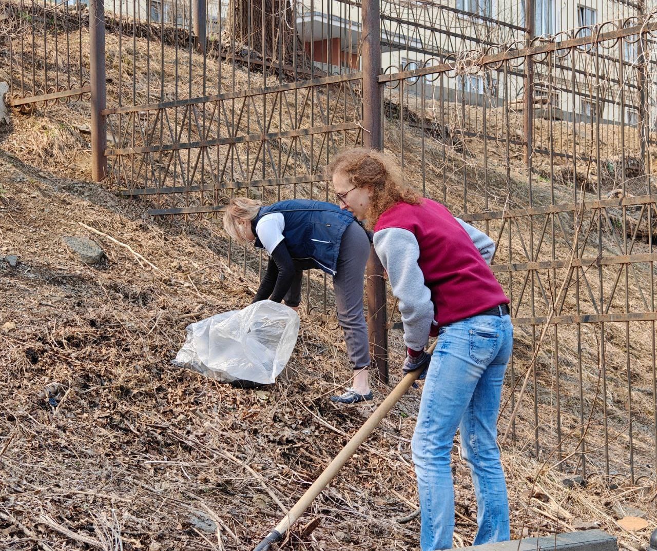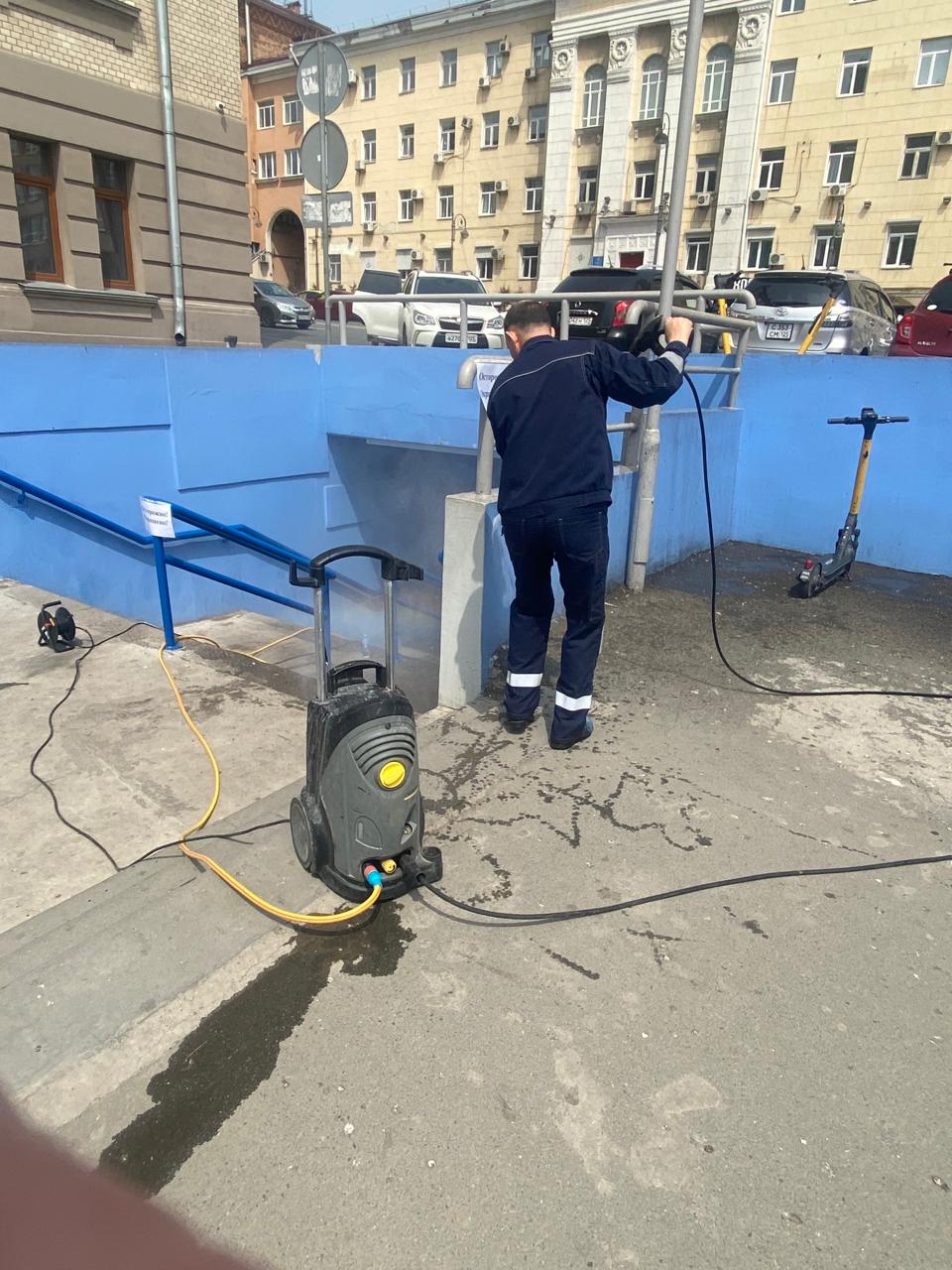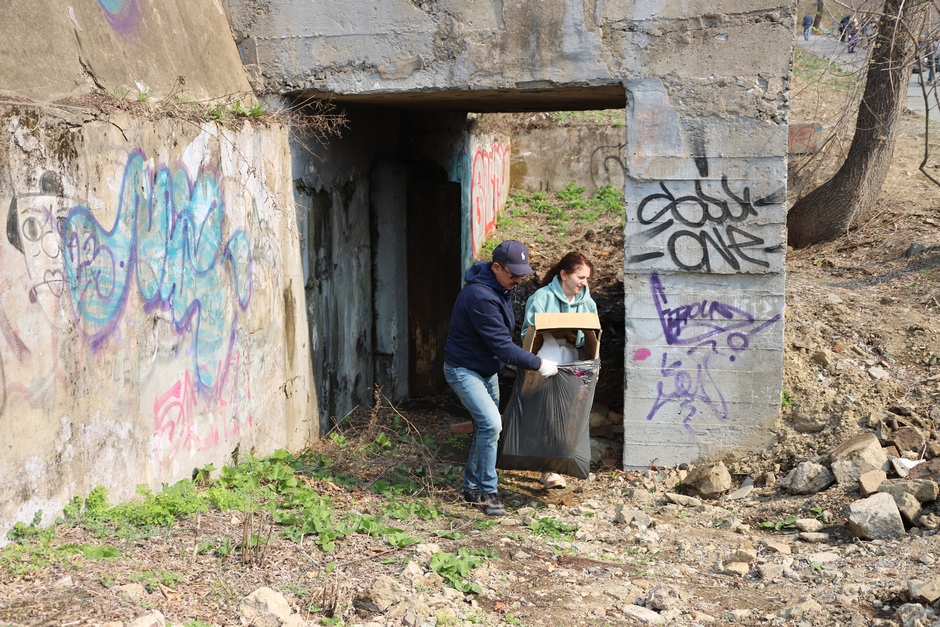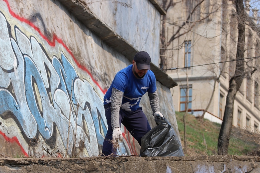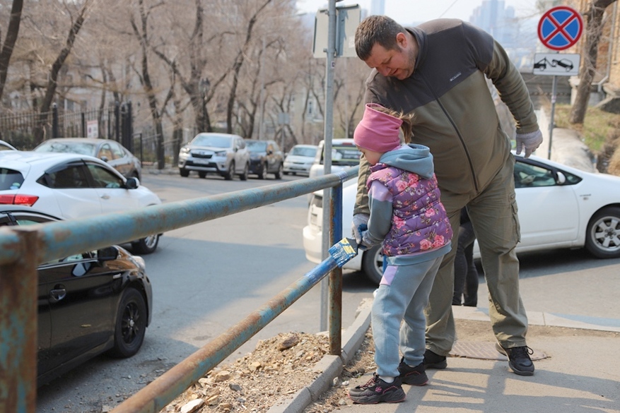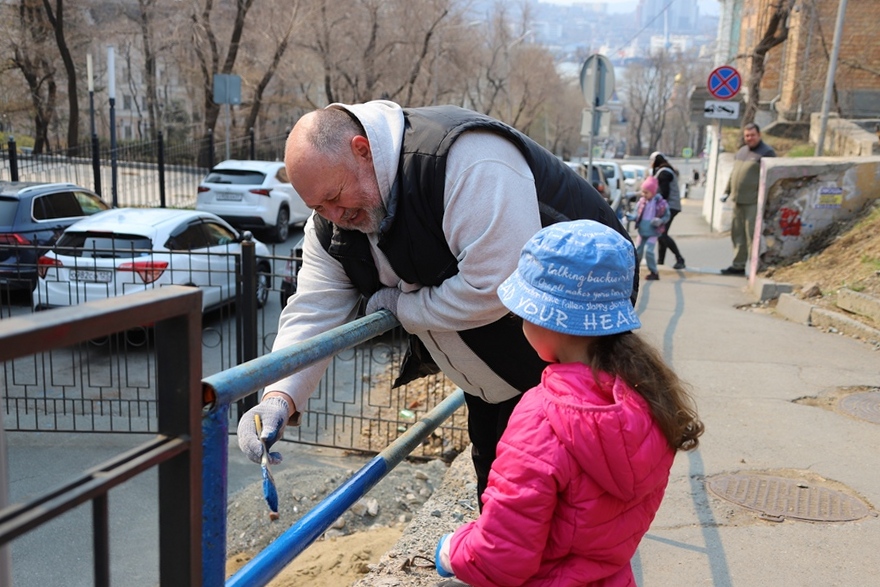 В ходе субботника депутаты и сотрудники аппарата убрали от мусора подземный пешеходный переход через улицу Суханова, лестницу и пешеходную дорожку, ведущие к Приморскому краевому драматическому театру имени Максима Горького, покрасили леерные ограждения, очистили прилегающий склон.