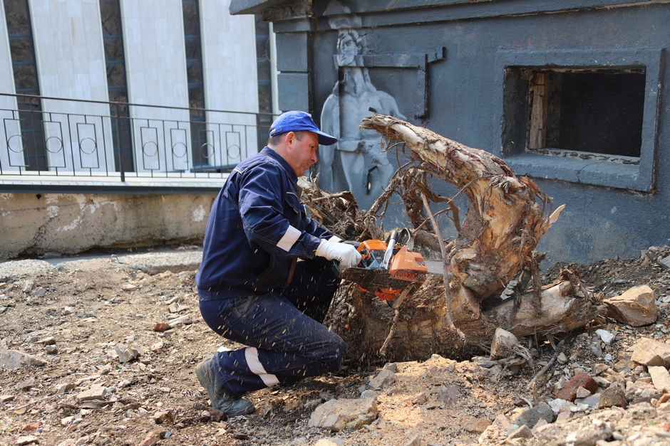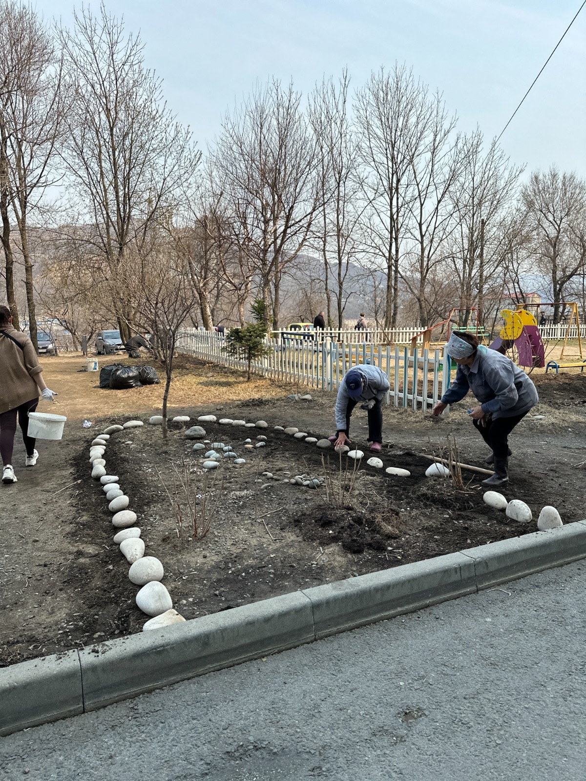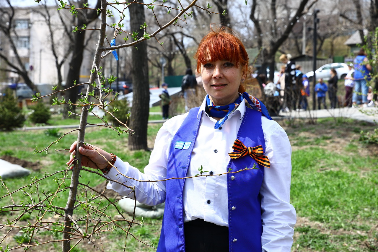 Депутат Думы города Владивостока от избирательного округа № 21, главный врач Владивостокской клинической больницы № 4 Елена Новицкая с сотрудниками медучреждения приводили в порядок прилегающую территорию.