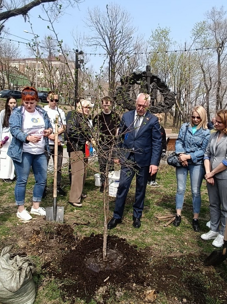 Председатель Думы города Владивостока Андрей Брик вместе с руководством и сотрудниками УФПС Приморского края, ветеранами связи и профсоюзными активистами принял участие в создании «Яблоневого сада почтовиков». Волонтеры высадили три десятка саженцев ― в честь предстоящего 30-летия с даты учреждения профессионального праздника «День российской почты», который отмечается во второе воскресенье июля.