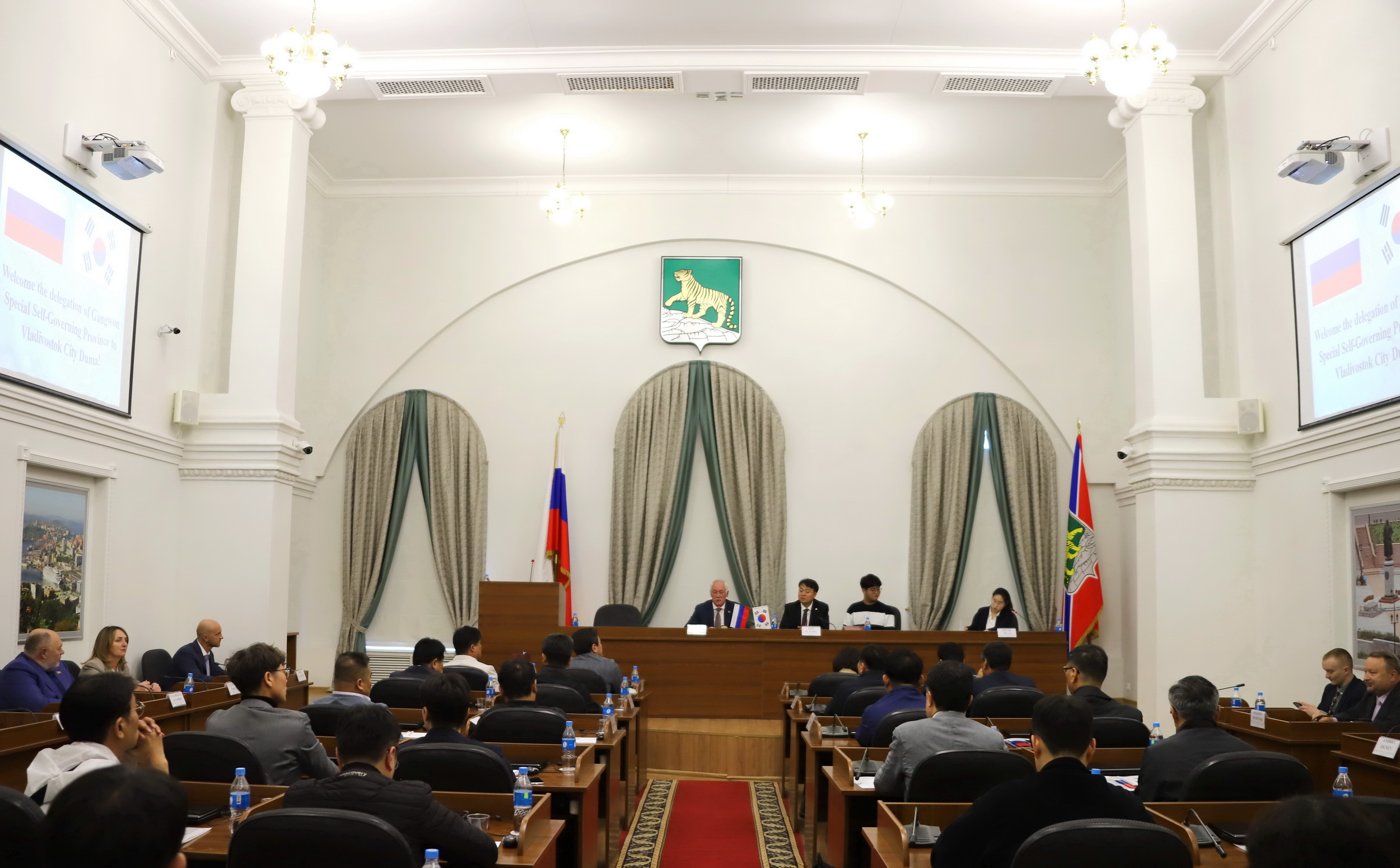 В протокольной встрече, которую провели председатель Думы города Владивостока Андрей Брик и председатель Совета округа Косон Ким Ирён, приняли участие представители органов местного самоуправления корейских городов и округов, входящих в провинцию Канвондо.