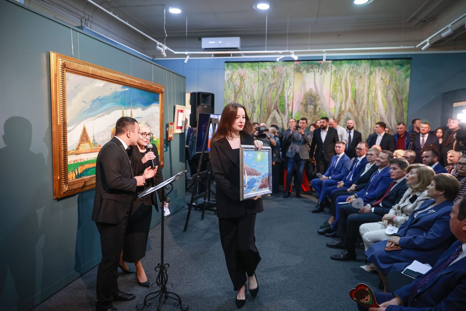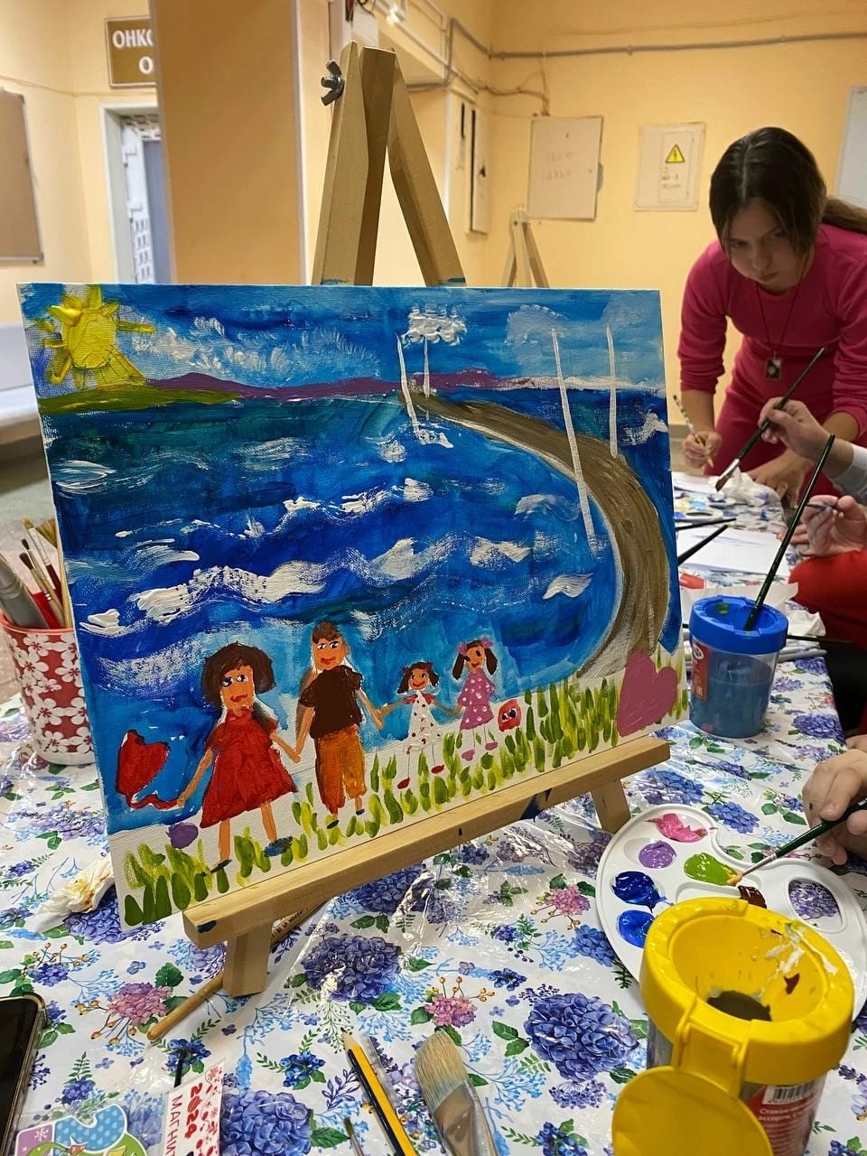 Картина, написанная совместно депутатом Инной Кошелевой и пациенткой детского онкоцентра, была выставлена на благотворительном аукционе