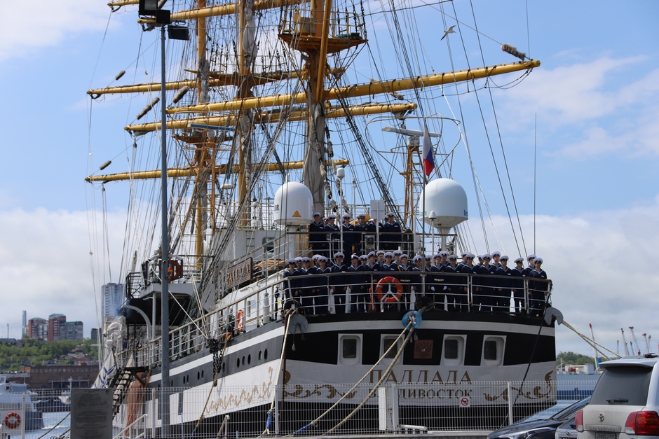 Команду учебного парусного судна «Паллада» приветствовал председатель Думы города Владивостока Андрей Брик: «Вскоре вы отправитесь в учебный морской поход по дальневосточным морям, в котором приобретете первый опыт и навыки работы в море. Стало хорошей традицией торжественные проводы парусника «Паллада» проводить у памятного знака морякам 2-й Тихоокеанской эскадры, которые 27 мая 1905 года в Цусимском проливе вступили в неравный бой с японским флотом, проявили беспримерное мужество, отвагу и героизм. Пусть подвиги российских моряков служат для вас примером и вдохновляют на высокие достижения во имя России. Уверен, что команда фрегата «Паллада» будет достойно нести славу российского морского флота».