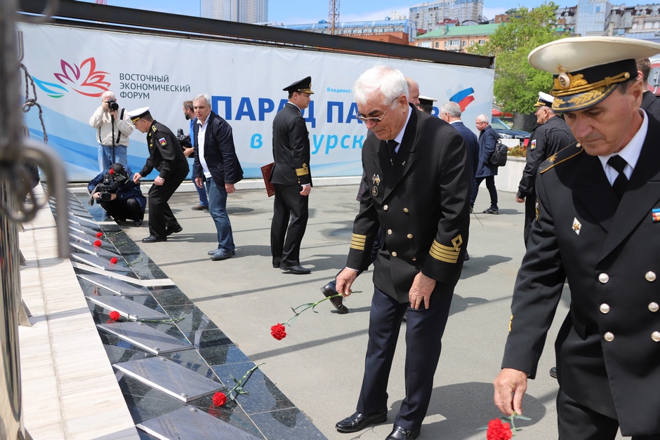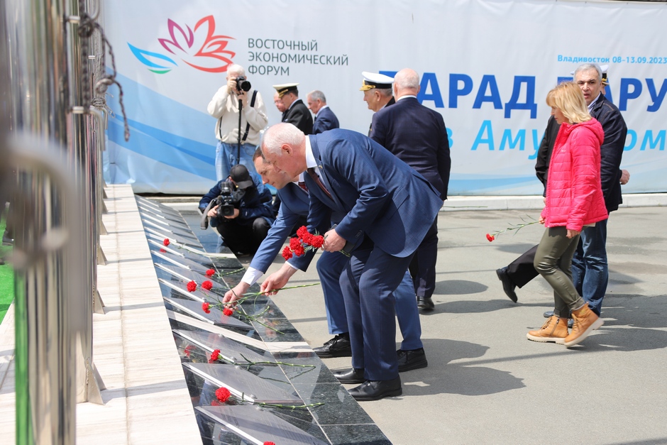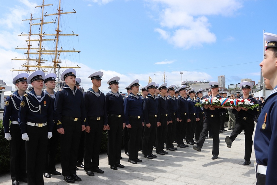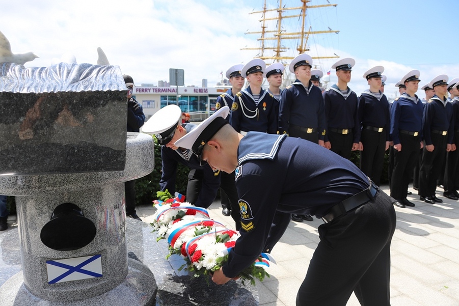 В ходе мероприятия участники почтили память российских моряков минутой молчания, возложили венок и цветы к памятному знаку. Команде парусника был торжественно передан венок для спуска на воду в Японском море в память о погибших российских моряках.