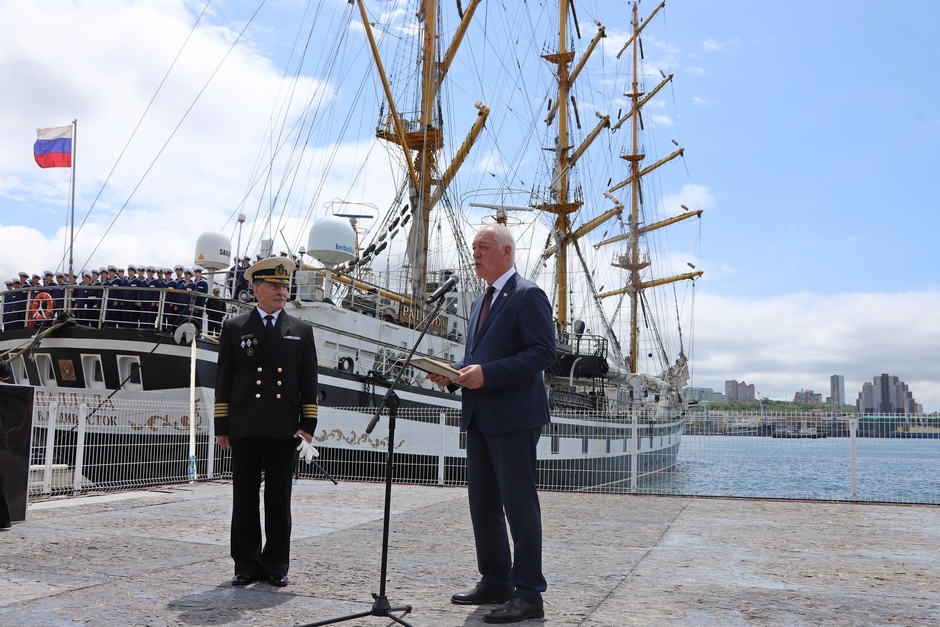 С напутственными словами к курсантам обратились директор Дальневосточного бассейнового филиала ФГУП «Росморпорт» Евгений Панкратов, президент Дальневосточной ассоциации морских капитанов Петр Осичанский, начальник Владивостокского филиала Нахимовского военно-морского училища Владимир Бураков, индивидуальный предприниматель Александр Корытко.