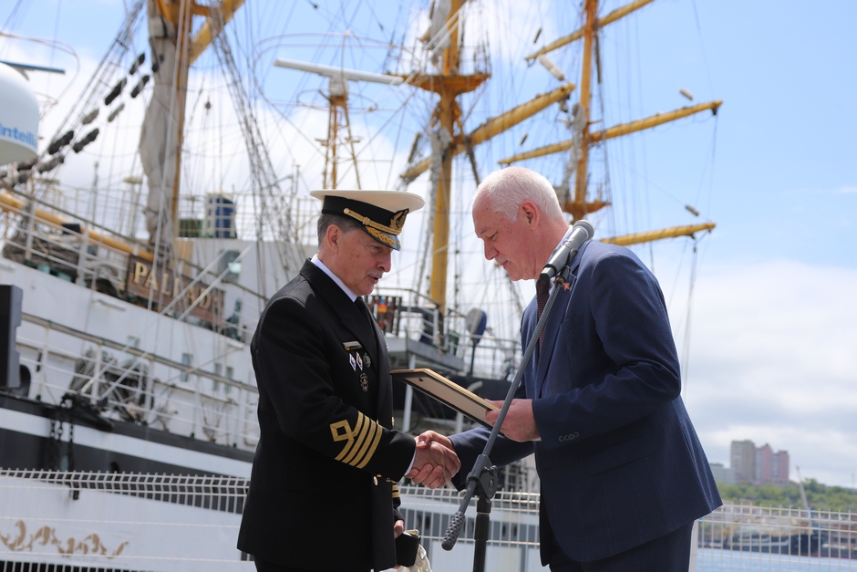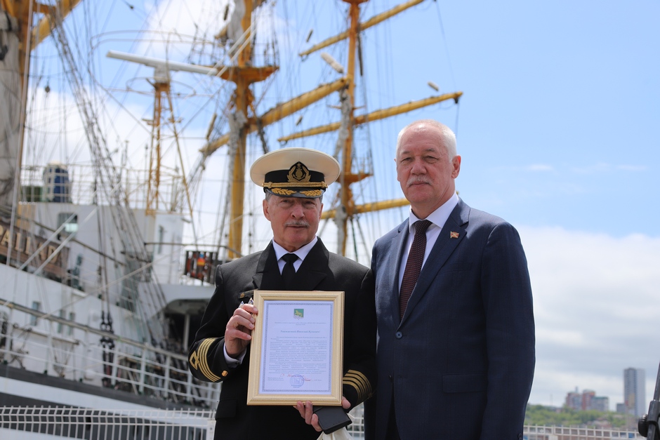Председатель Думы города Владивостока Андрей Брик вручил Благодарственное письмо Думы города Владивостока капитану учебного парусного судна «Паллада» Николаю Зорченко в связи его с 70-летием: «Капитан учебных парусных судов «Паллада» и «Седов», участник кругосветных плаваний - Вы своей плодотворной деятельностью вносите большой вклад в подготовку высококвалифицированных кадров для морской отрасли, прививаете курсантам любовь к морю и морской профессии, воспитываете молодое поколение на примере лучших флотских традиций в духе любви к Отечеству. Ваши трудовые достижения, проведение кругосветных плаваний, в которых были успешно выполнены научно-исследовательские и учебные задачи, просветительская миссия, отмечены высокими государственными наградами Орденом Александра Невского, Орденом «За морские заслуги», Орденом Почёта. Ваша многолетняя трудовая деятельность – достойный пример для подражания».