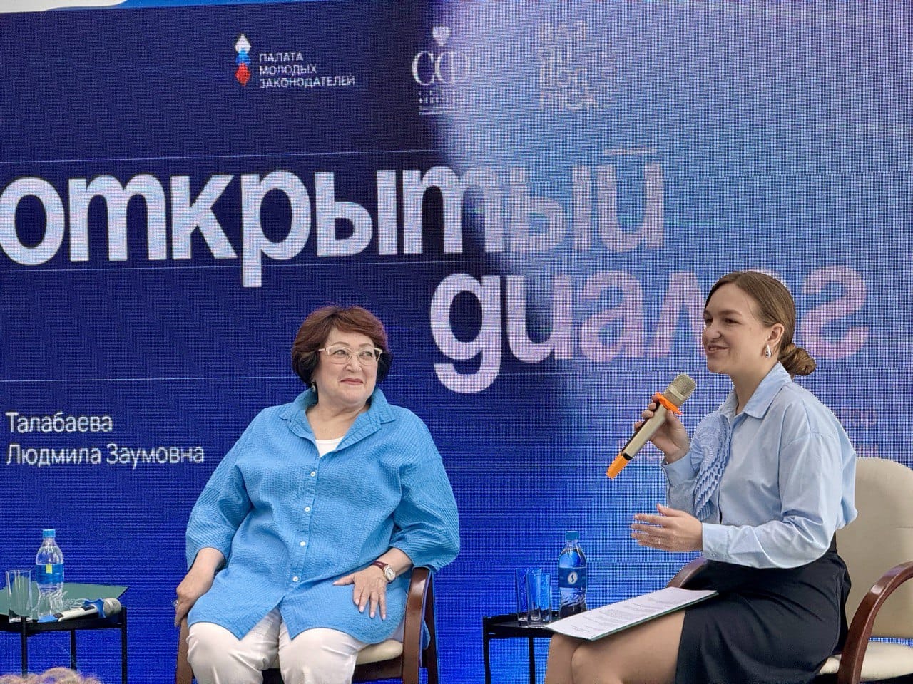 Модератор площадки председатель комитета по молодежной политике, физической культуре и спорту Думы города Владивостока, заместитель председателя информационного комитета Палаты молодых законодателей при Совете Федерации Мария Лагунова приветствовала сенатора Людмилу Талабаеву на молодежной площадке Владивостока: «2024-й год для города очень важен ― вместе с Москвой Владивосток гордо несет звание «Молодежная столица России». Именно поэтому сегодняшняя встреча особенно ценна, ведь ее участники смогут напрямую задать интересующие их вопросы».