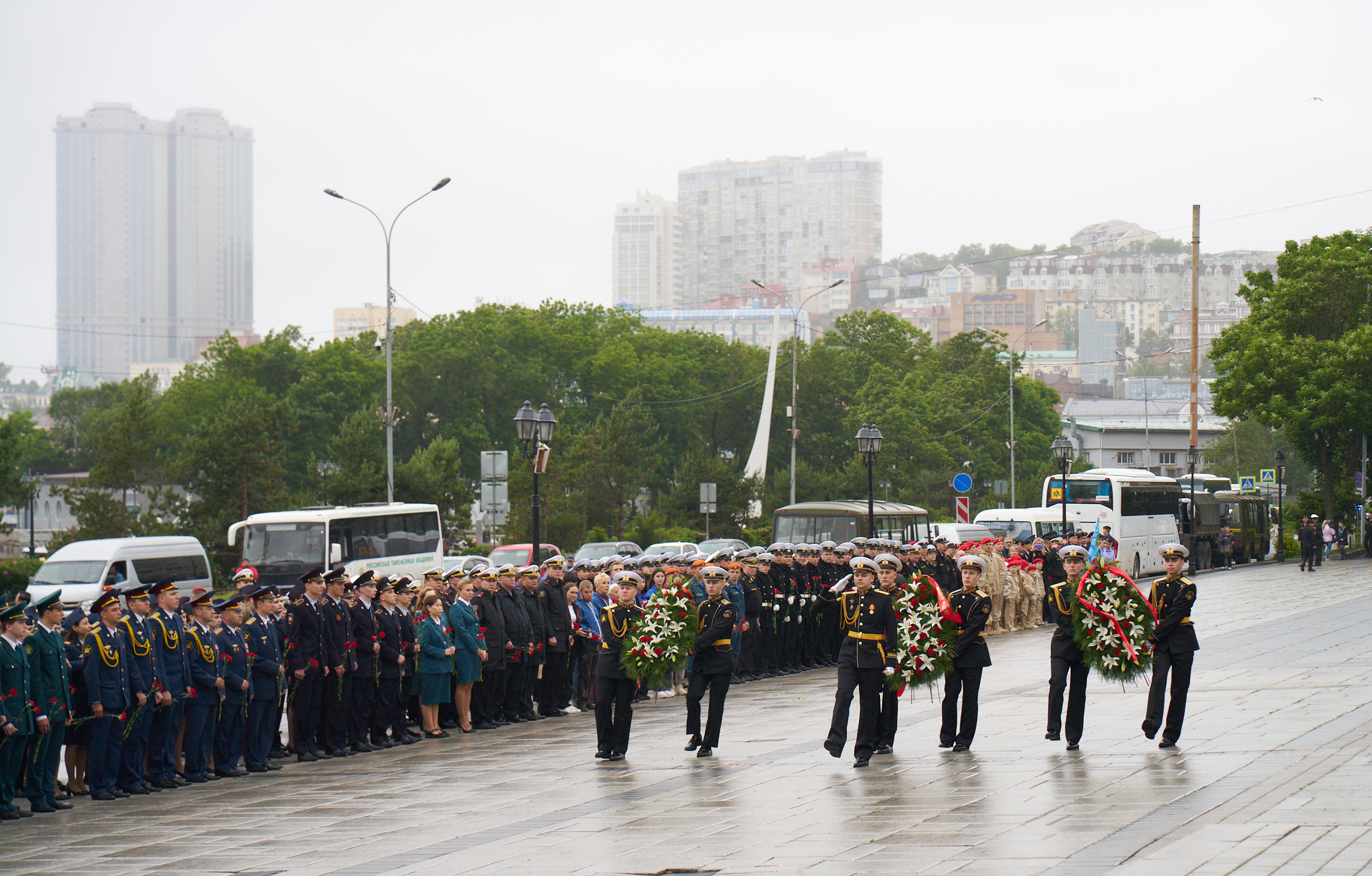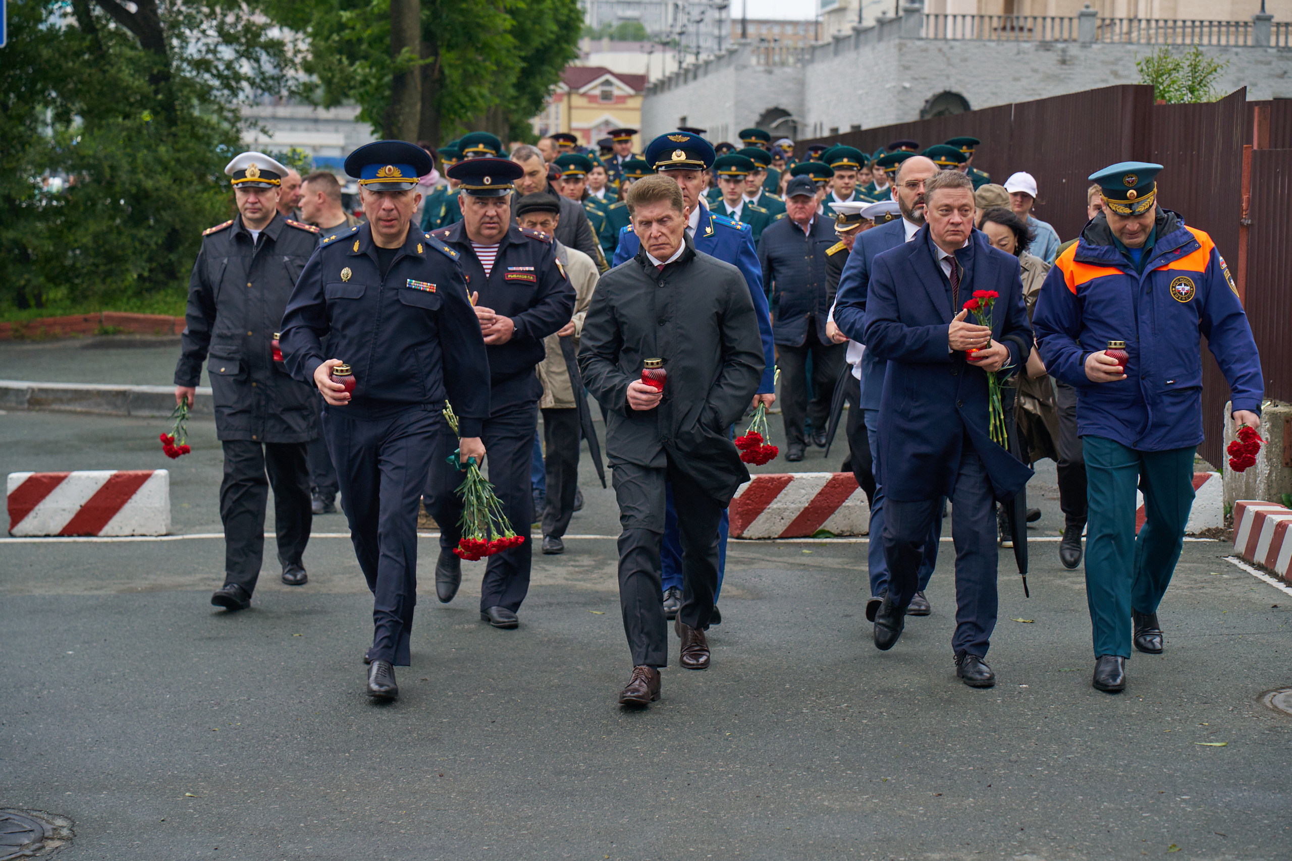 Представители органов государственной власти и местного самоуправления, общественных организаций, курсанты, жители и гости города пронесли зажжённые свечи от Спасо-Преображенского кафедрального собора на центральной площади города до Стены Памяти мемориала «Боевая слава Тихоокеанского флота». После шествия у Вечного огня состоялся митинг, на котором к собравшимся обратился Губернатор Приморского края Олег Кожемяко, командующий Тихоокеанском флотом Виктор Лиина, ветеран Великой Отечественной войны Лидия Негода. В своих выступлениях они отметили, что 22 июня самая трагическая дата в истории нашей страны. В этот день в 1941 году гитлеровская Германия без объявления войны вторглась на территорию Советского Союза - так началась Великая Отечественная война, которая продолжалась 1418 тяжелых дней и ночей и унесла жизни миллионов людей. Из Приморья на фронт было призвано более 200 тысяч приморцев. Они защищали Москву и Ленинград, сражались в Сталинграде и на Курской дуге, форсировали Днепр, освобождали Украину и Беларусь, штурмовали Берлин. Не вернулись с полей сражений порядка 30 тысяч приморцев.
