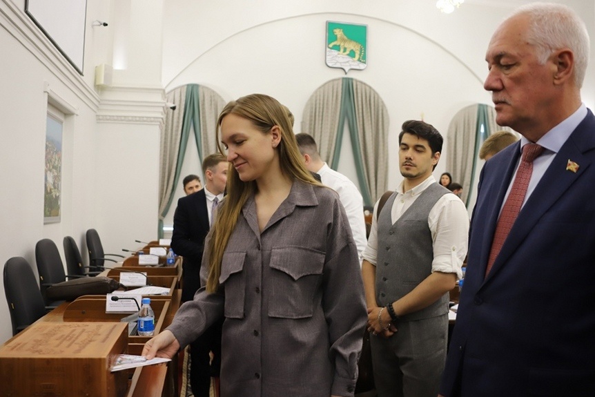 В очередном заседании Общественной молодежной палаты при Думе города Владивостока приняли участие председатель Молодежного парламента при Думе Находкинского городского округа Ярослав Чураков, председатель Молодёжного совета Арсеньевского городского округа, член молодёжного парламента при Законодательном Собрании Приморского края Оксана Турусова, председатель молодежного совета при Уполномоченном по правам человека в Приморском крае Михаил Кузнецов.