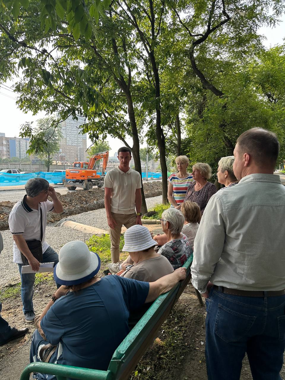 Жители домов №№ 2, 4 и 6 по ул. Жигура обсудили с депутатом и представителями подрядчика ход строительства прогулочной парковой аллеи, выполняемой в рамках национального проекта «Жилье и городская среда», а также сквера с тигром, который строится по проекту инициативного бюджетирования «Твой проект» рядом с домом по ул. Жигура, 2.