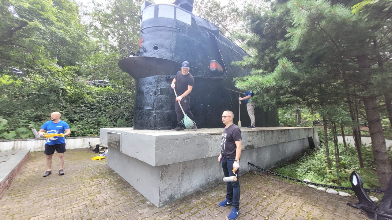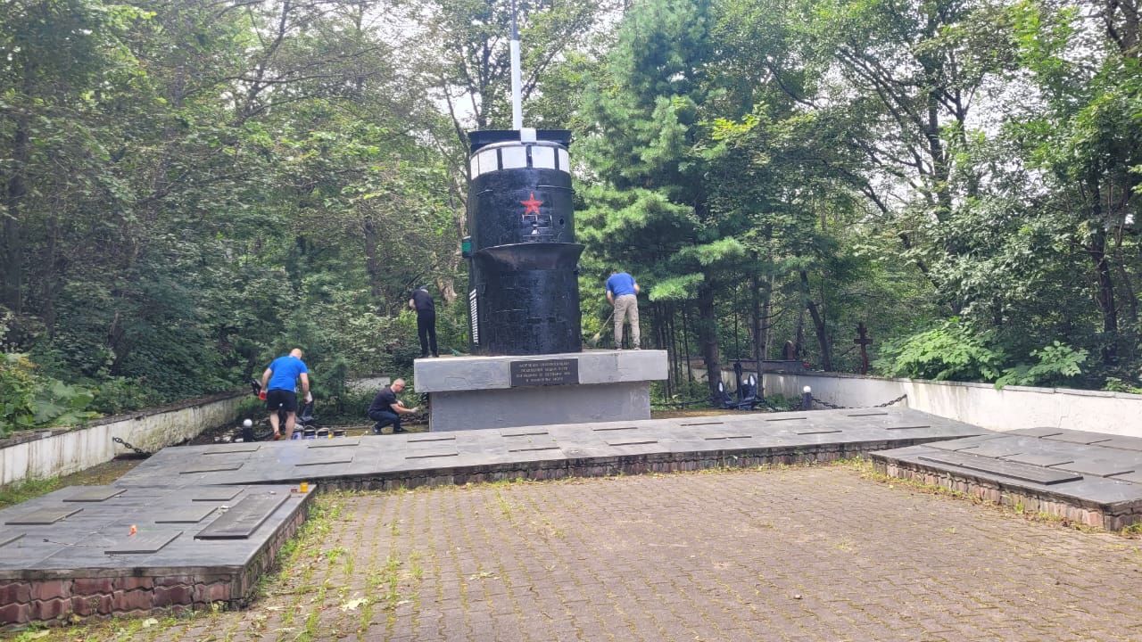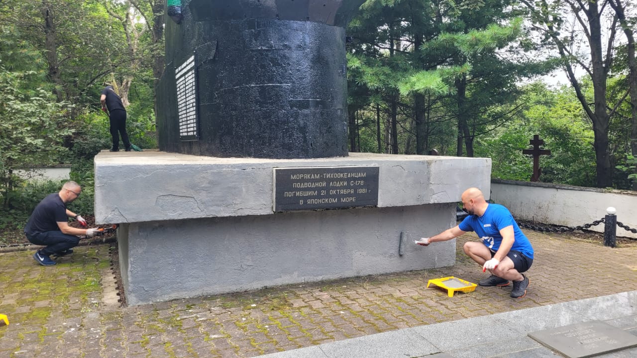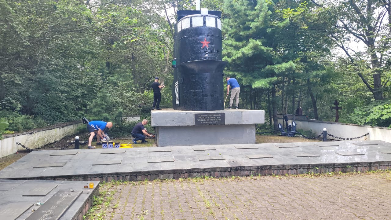 Участники мероприятия привели в порядок место захоронения, покрасили монумент, убрали мусор. После субботника возложили цветы погибшим морякам-подводникам и почтили их память минутой молчания.