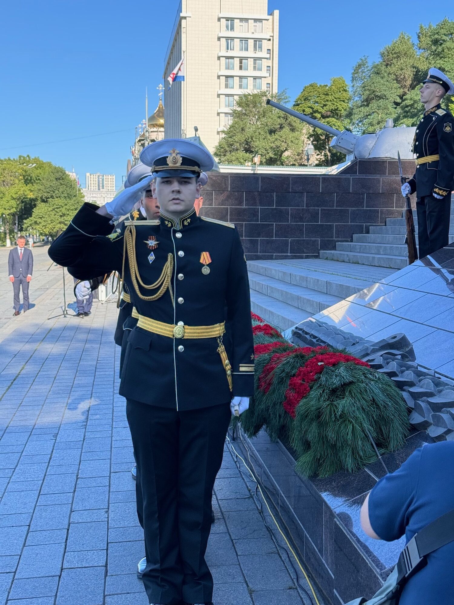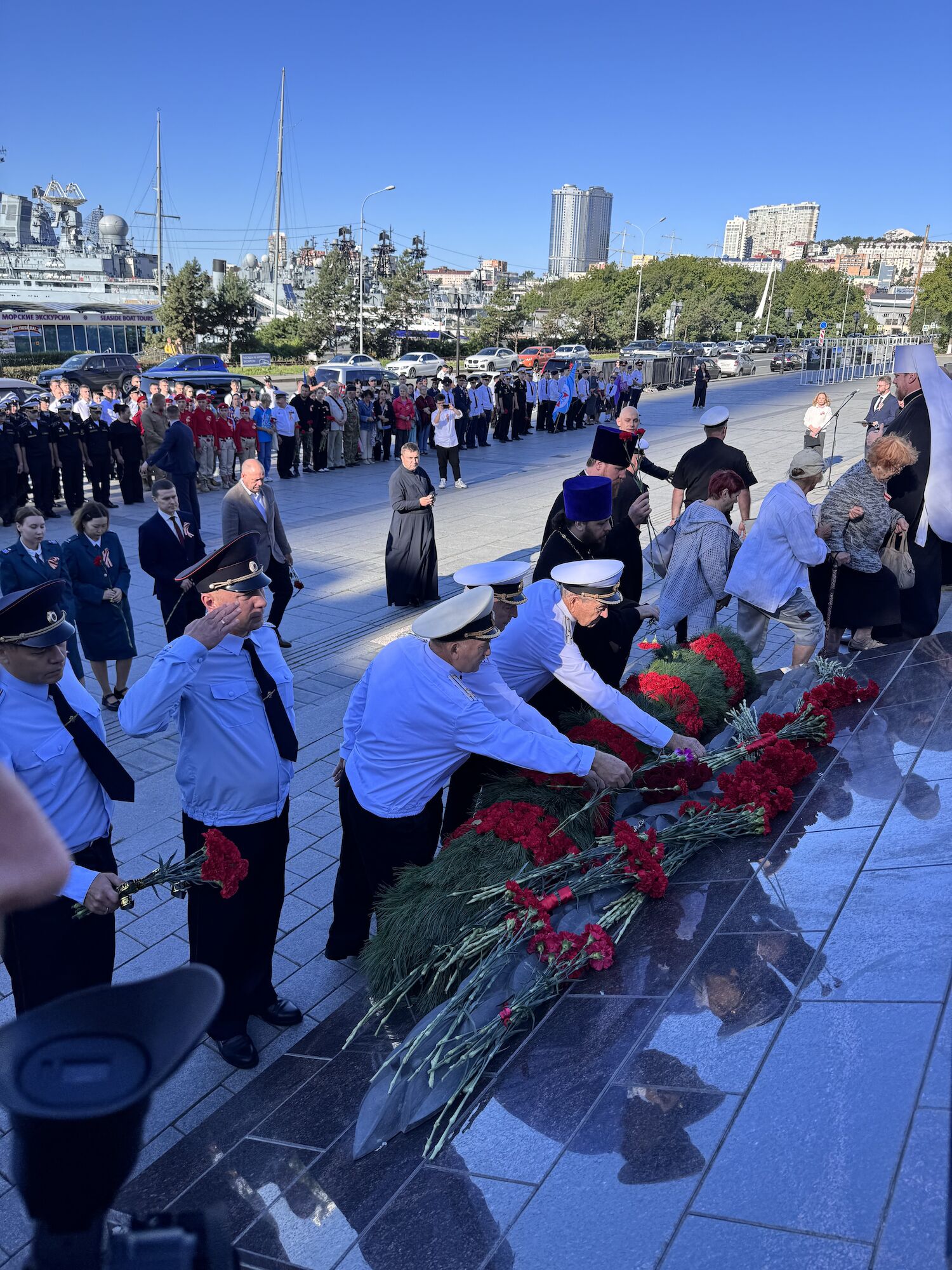 В мероприятии приняли участие представители органов государственной власти и местного самоуправления, ветеранских и молодежных общественных организаций, жители и гости города. Собравшиеся минутой молчания почтили память павших во Второй мировой войне и возложили цветы к Вечному огню мемориального комплекса «Боевая слава Тихоокеанского флота».
