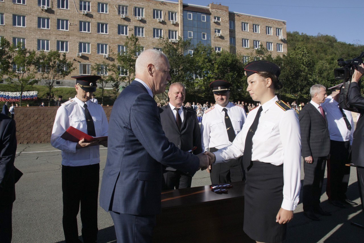 Председатель Думы города Владивостока Андрей Брик принял участие в торжественных мероприятиях, посвященном Дню знаний, во Владивостокском филиале Дальневосточного юридического института МВД России имени И.Ф. Шилова, где состоялась церемония вручения звания «младший лейтенант полиции» слушателям пятого курса, и во Владивостокском филиале Нахимовского военно-морского училища.