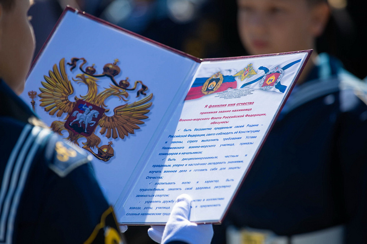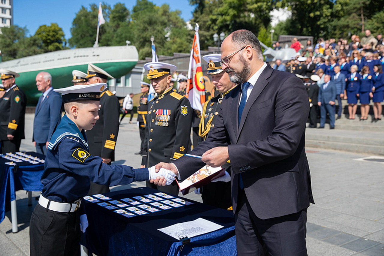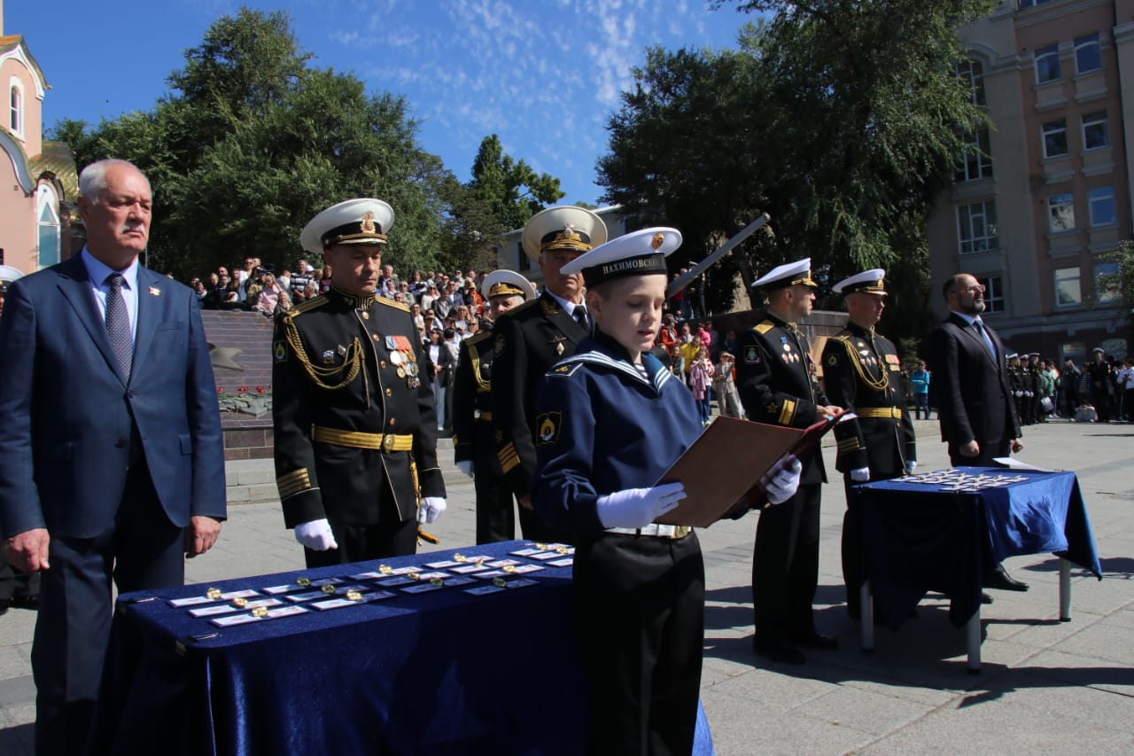 В ходе торжественного мероприятия перед мемориалом «Боевая слава Тихоокеанского флота» был развернут государственный флаг России, состоялась церемония «Клятва нахимовца», воспитанникам нового набора были вручены удостоверения и знаки нахимовцев.