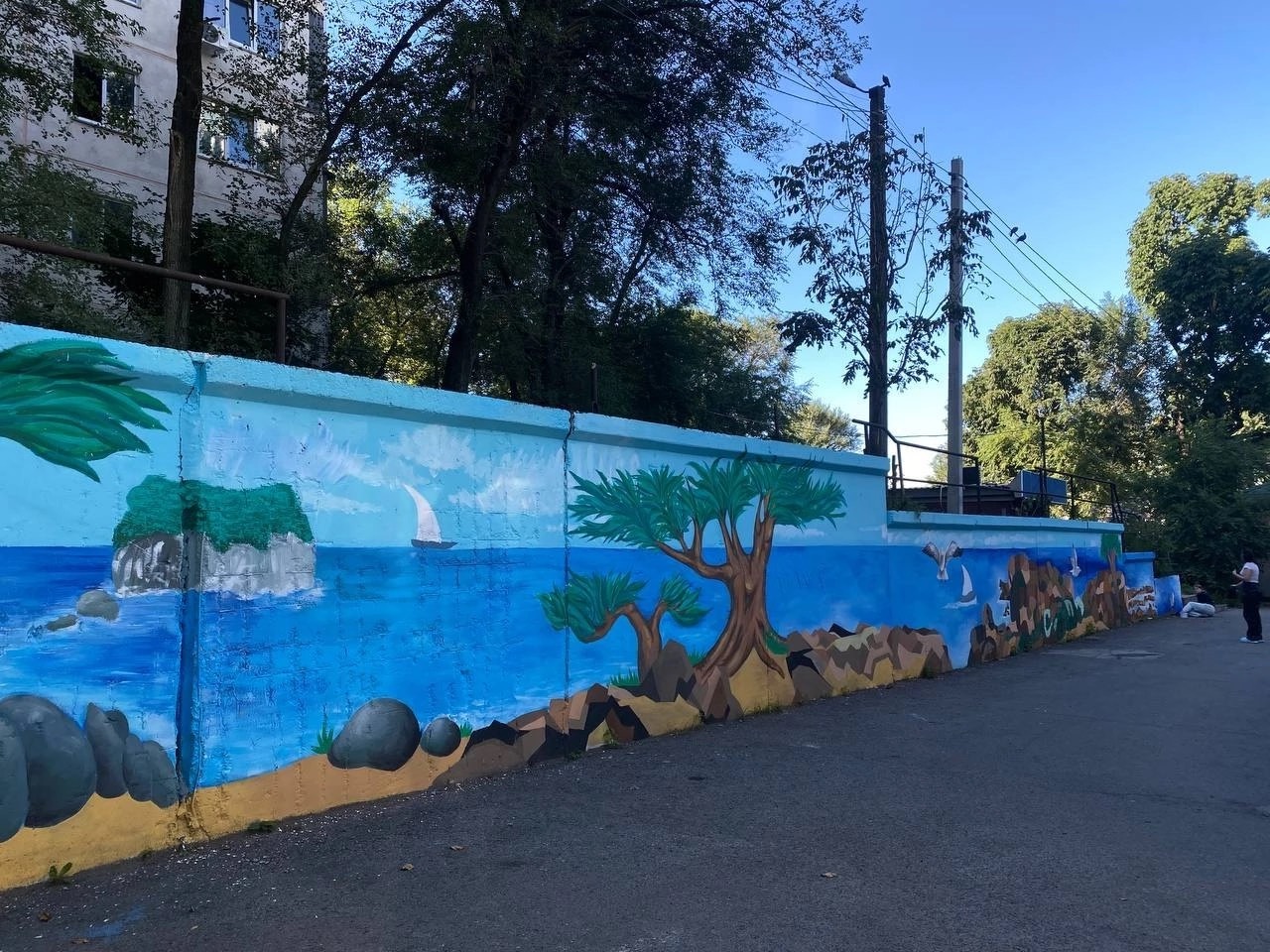 Проведены работы по окраске подпорных стен в районе Океанского проспекта, 140, Красного Знамени, 101, на станции «Военное шоссе». Проект реализуется при поддержке Департамента внутренней политики Правительства Приморского края, АНО «Инверика», при участии студентов направления «Дизайн архитектурной среды» ДВФУ и сообщества «East Architect».