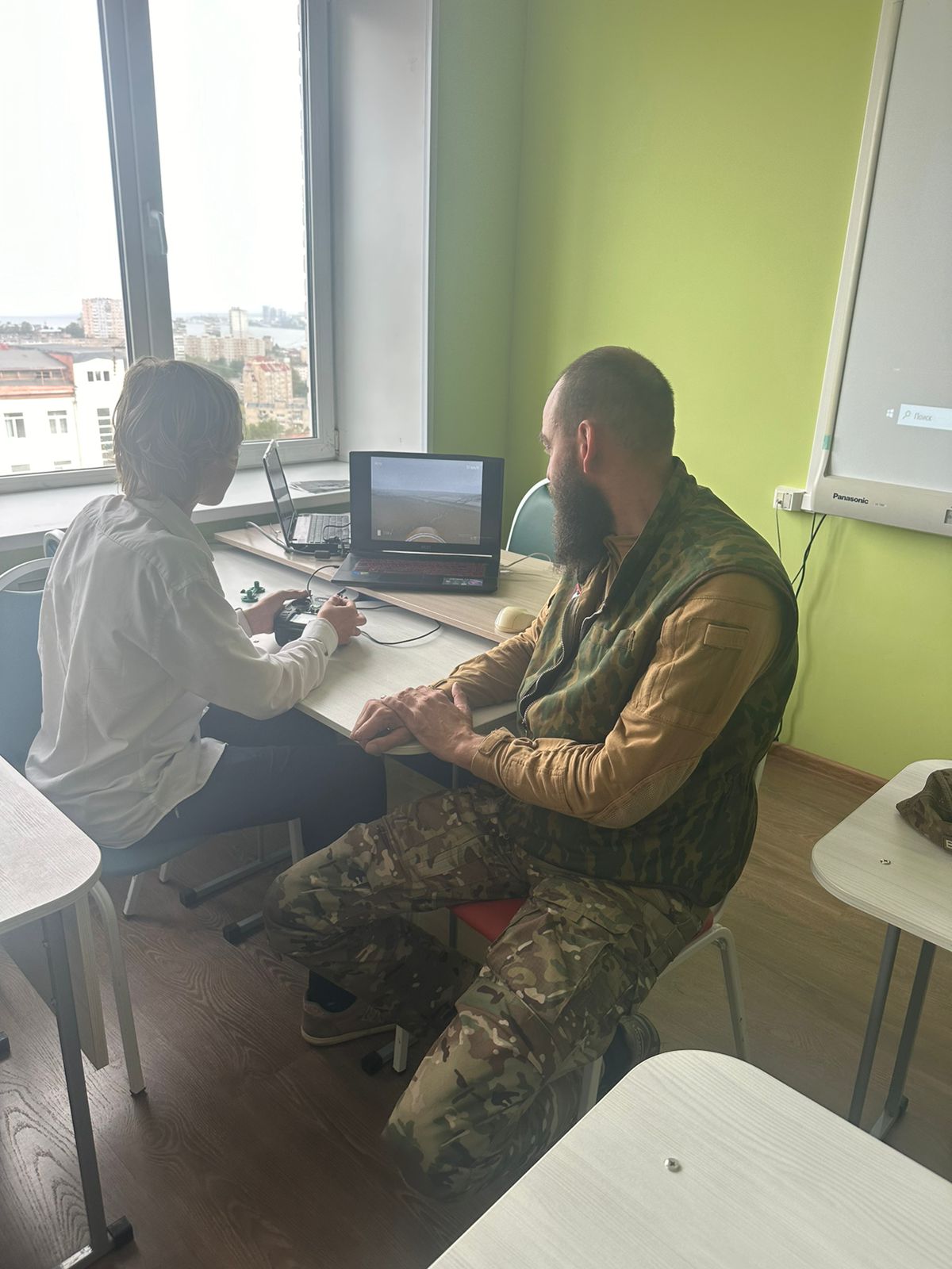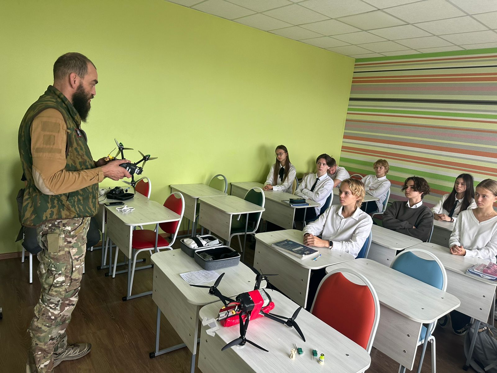 Особый интерес у школьников вызвали беспилотные летательные аппараты. Виктор Тарабарин и участники военно-патриотического клуба «Де-Фриз» рассказали о возможностях применения ударных и разведывательных беспилотников. Мальчишки с интересом слушали гостей, задавали разные вопросы и показывали свои навыки по управлению дронами.