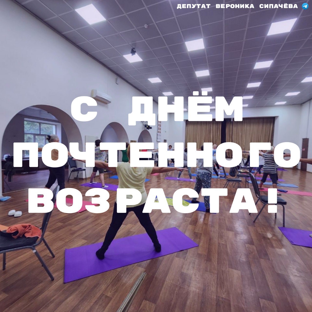 Депутат Вероника Сипачева реализует поддержанный грантом Губернатора Приморского края проект «Энергия опыта» для людей старше 55 лет. На очередном занятии коуч-йогой в рамках направления «Жизнь в тонусе» депутат поздравила участников с Днём пожилых людей, пожелав им крепкого здоровья, бодрости, легкости и жизненных сил.