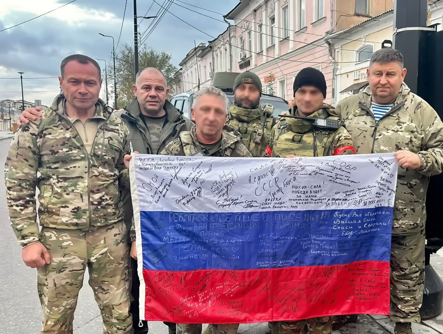 В знак глубокого уважения и благодарности за мужество, преданность делу защиты родных рубежей бойцам были вручены благодарственные грамоты, отличительные знаки «За заслуги перед Владивостоком», а также передан гуманитарный груз, путевки на бесплатное оздоровительное лечение в центре отдыха и здоровья «Роял Парк». Трогательным подарком для участников СВО стали письма от приморских школьников, студентов, и флаг, на котором жители края оставили свои пожелания скорейшей победы.