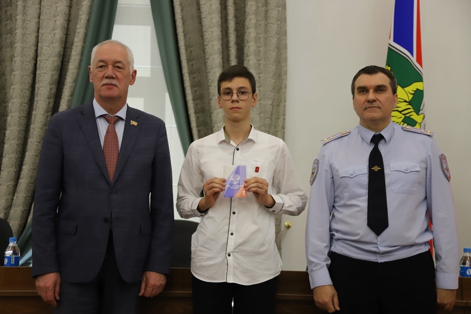 В ходе мероприятия Андрей Брик и начальник Управления по вопросам миграции УМВД России по Приморскому краю Олег Дубовицкий вручили ребятам паспорта гражданина Российской Федерации.