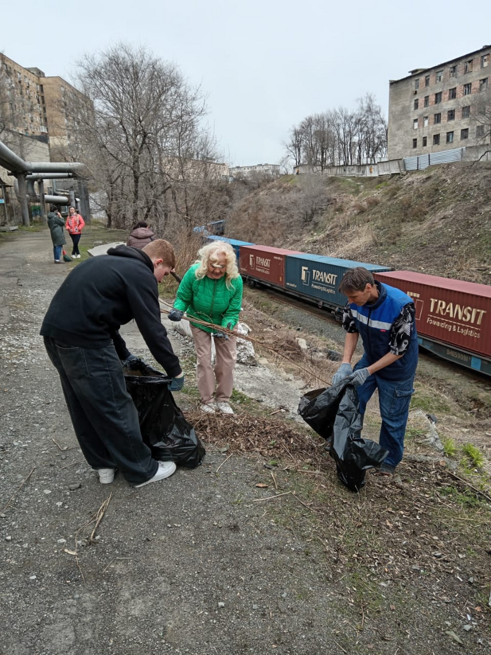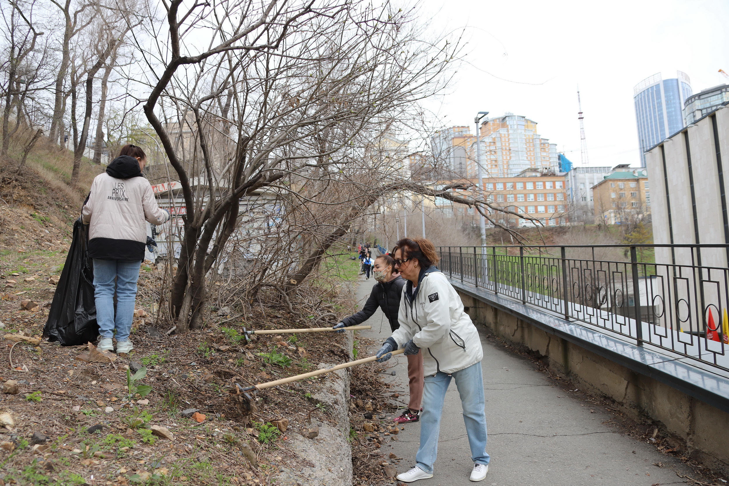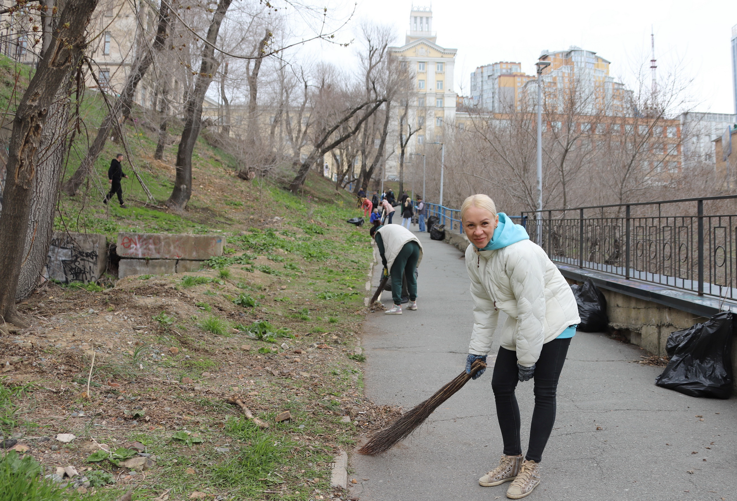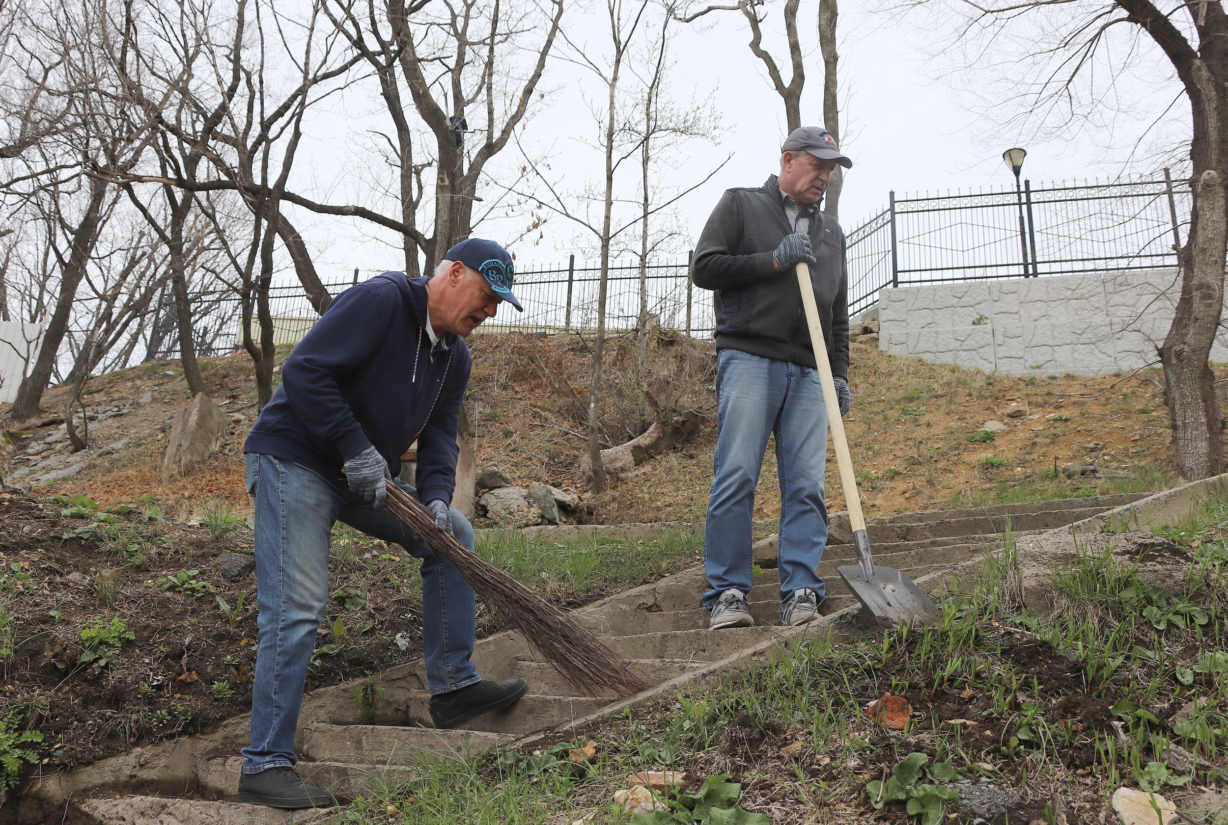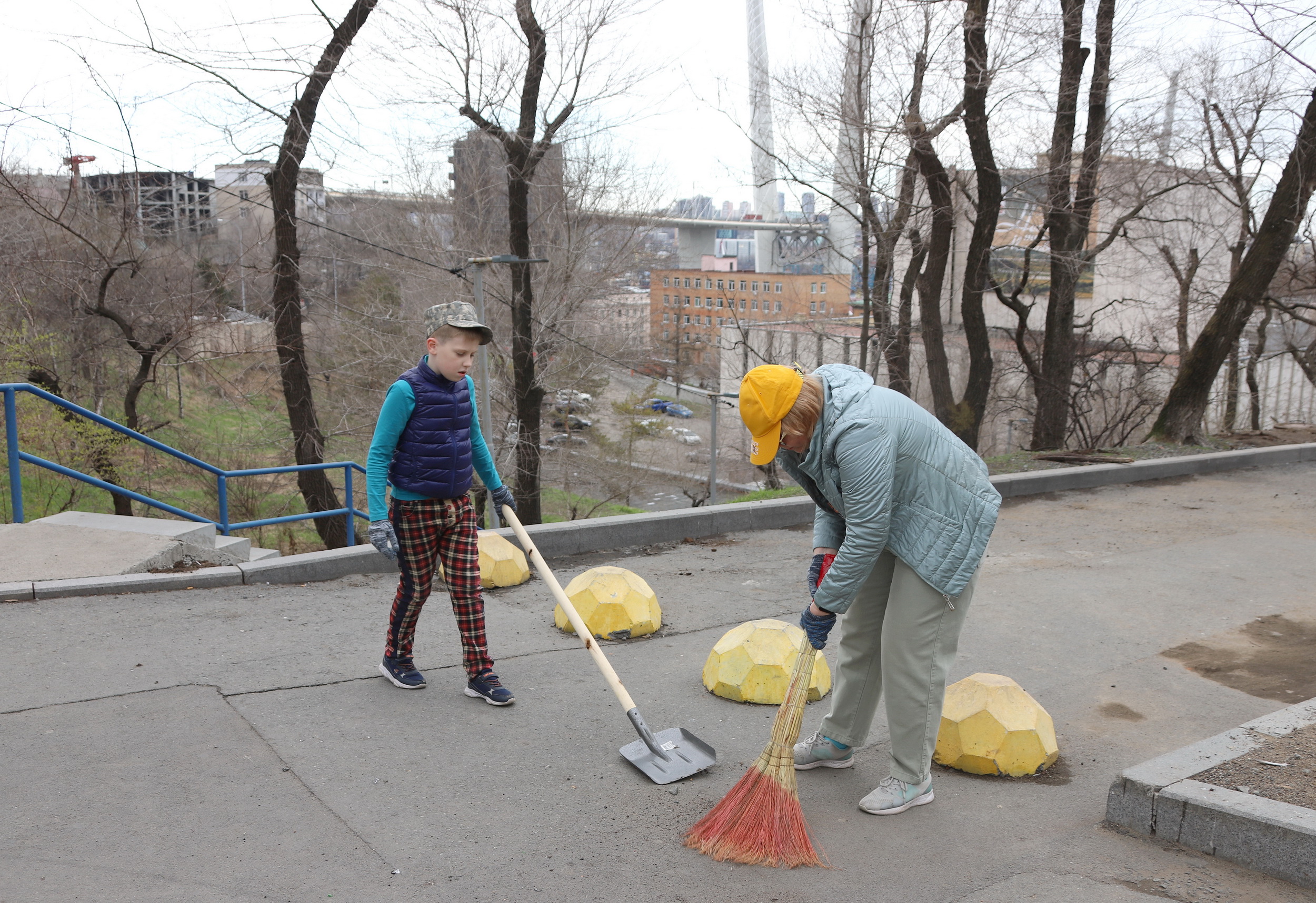Во Владивостоке в рамках общегородского субботника прошли мероприятия по санитарной очистке общественных, придомовых и ведомственных территорий. Губернатор Приморского края Олег Кожемяко принял участие в уборке территории Госпиталя для ветеранов войн. Главнокомандующий ТОФ Виктор Лиина, глава Владивостока Константин Шестаков помогли с очисткой от мусора территории Госпиталя ТОФ. Председатель Думы города Владивостока Андрей Брик, депутаты Думы Вячеслав Глушко, Артем Володин, сотрудники аппарата Думы, активисты «Единой России» и «Молодой гвардии» привели в порядок подземный переход на ул. Суханова, очистили лестницу и пешеходную дорожку, ведущие к Приморскому академическому краевому драматическому театру им. М. Горького, прилегающий склон.