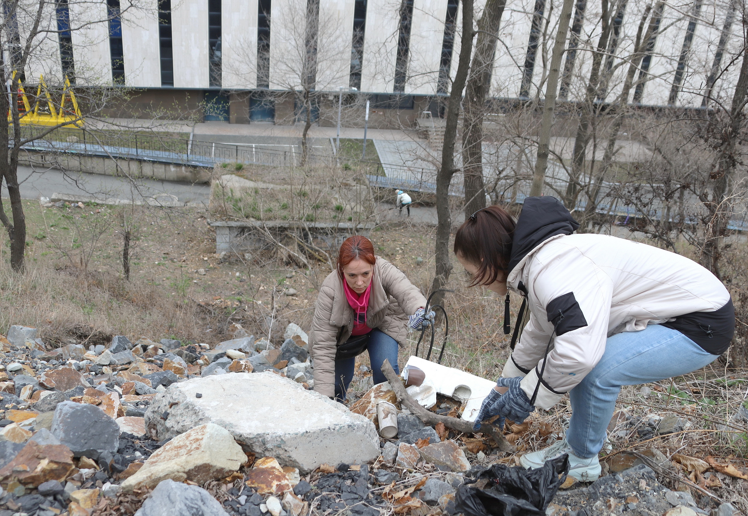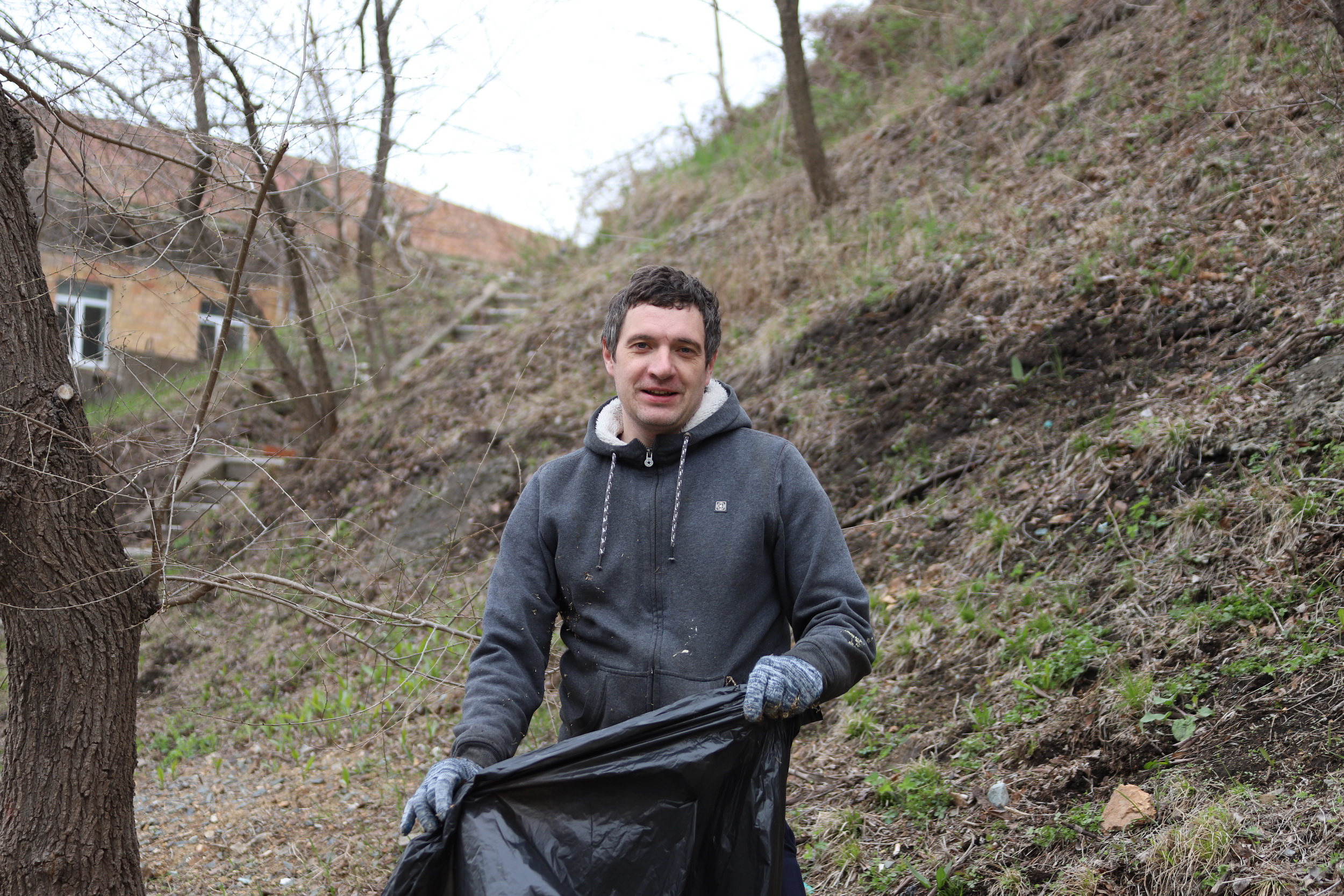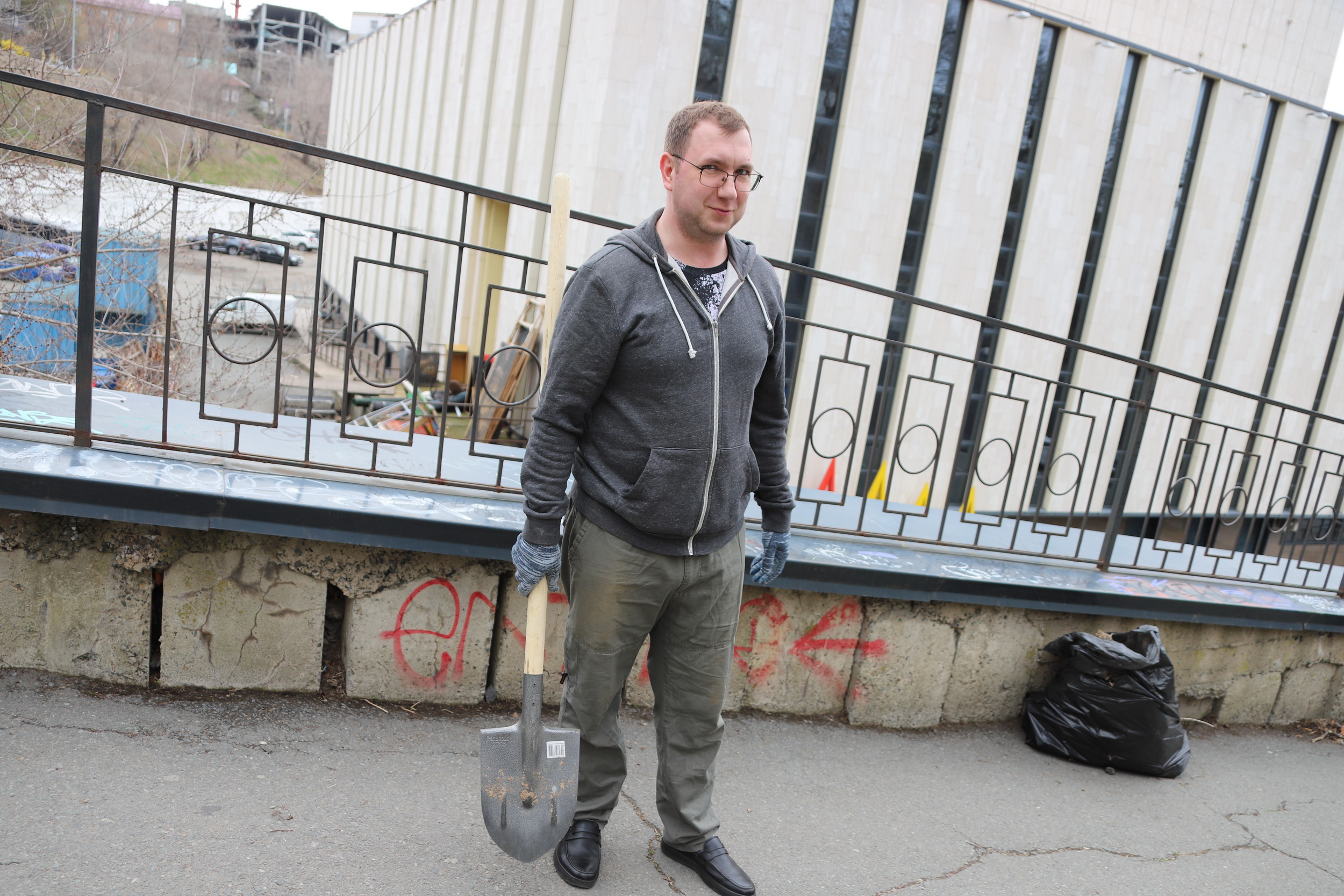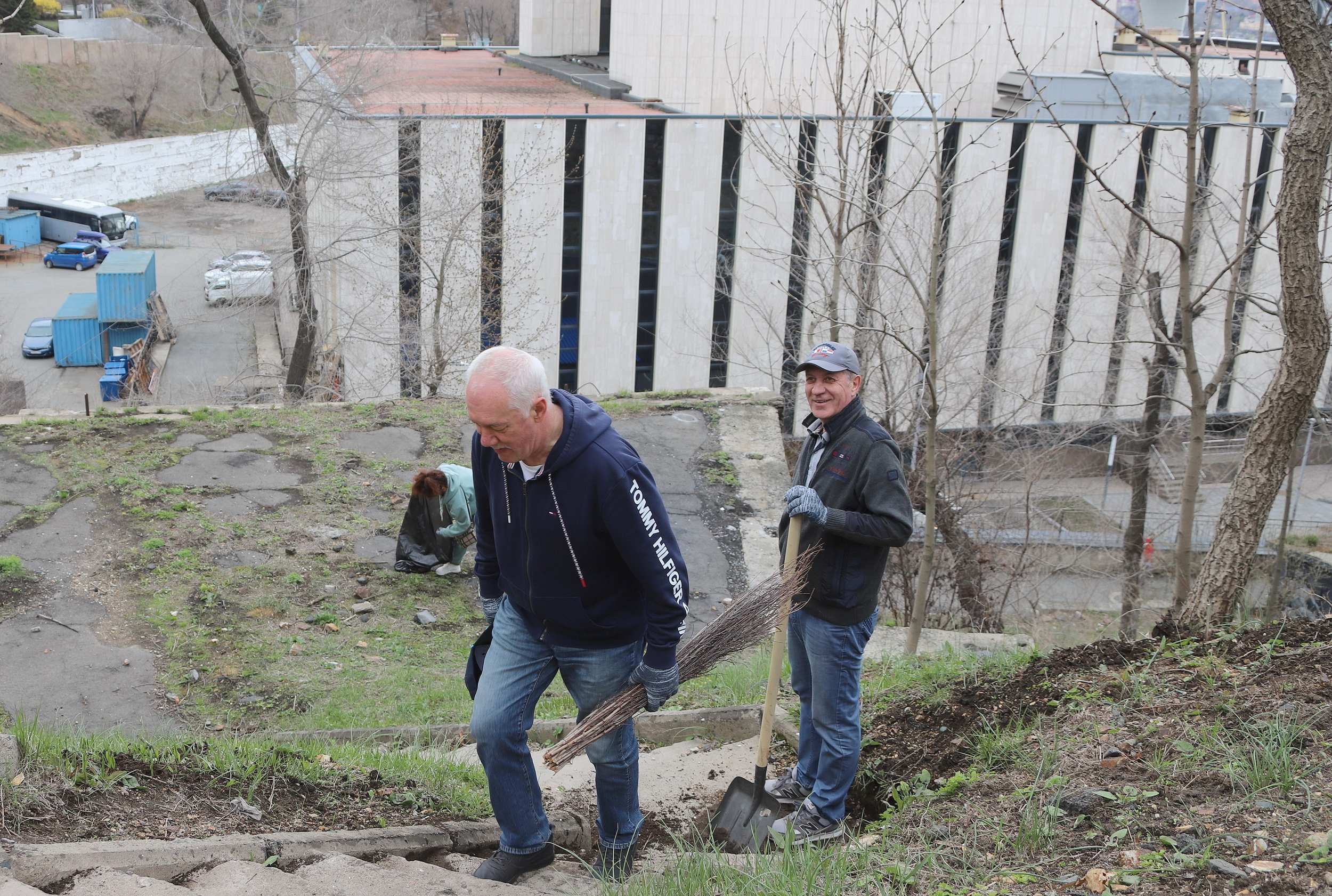 Во Владивостоке в рамках общегородского субботника прошли мероприятия по санитарной очистке общественных, придомовых и ведомственных территорий. Губернатор Приморского края Олег Кожемяко принял участие в уборке территории Госпиталя для ветеранов войн. Главнокомандующий ТОФ Виктор Лиина, глава Владивостока Константин Шестаков помогли с очисткой от мусора территории Госпиталя ТОФ. Председатель Думы города Владивостока Андрей Брик, депутаты Думы Вячеслав Глушко, Артем Володин, сотрудники аппарата Думы, активисты «Единой России» и «Молодой гвардии» привели в порядок подземный переход на ул. Суханова, очистили лестницу и пешеходную дорожку, ведущие к Приморскому академическому краевому драматическому театру им. М. Горького, прилегающий склон.