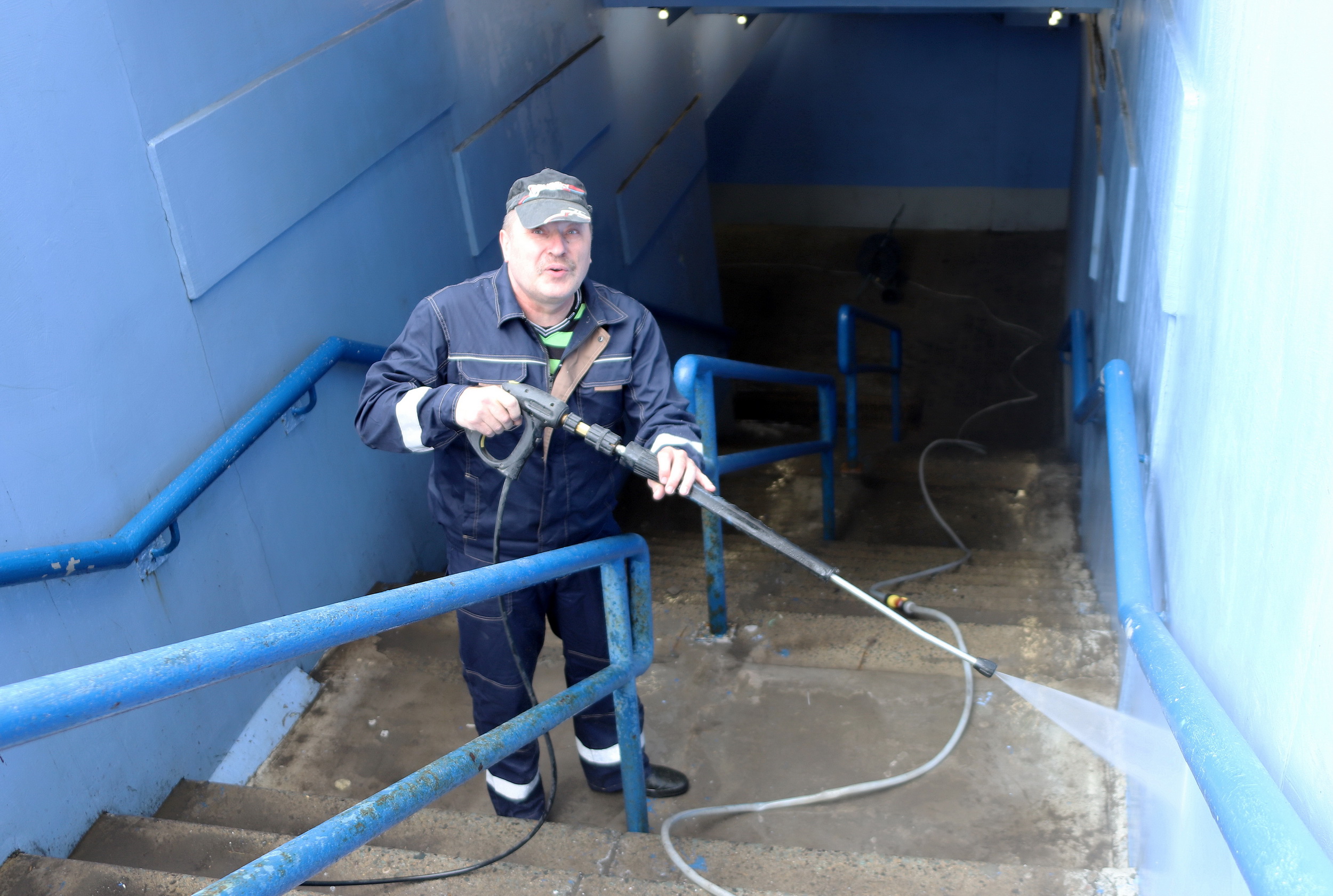 «По инициативе депутатов за последние годы неоднократно проводилась его реконструкция как силами соответствующих ремонтных служб, так и при поддержке сотрудников Думы. В переходе сделан ремонт, установлено освещение. В этом году в ходе субботника удалось задействовать специальную уборочную технику ― автономные аппараты высокого давления воды. При помощи моющего состава, подаваемого под напором, были отмыты перила, лестничные марши, стены подземного перехода.