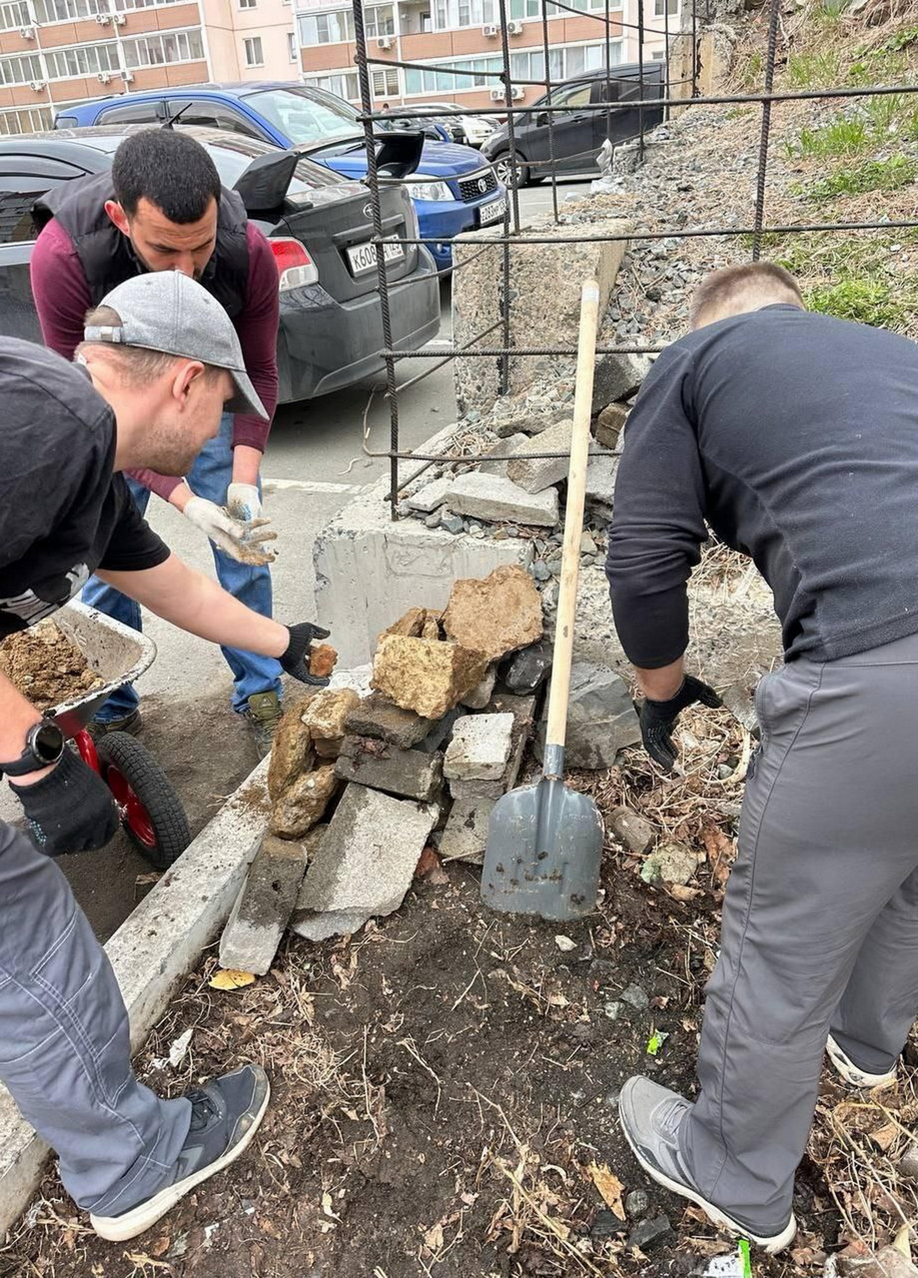 Депутат Антон Савенко помог с организацией субботника инициативным жителям многоквартирных домов по ул. Сафонова в Первомайском районе: «Высадили хвойные породы, лиственные и декоративные кустарники, гортензию и абрикосы, всего более 100 саженцев. Спасибо за помощь специалистам муниципального учреждения «Зеленый Владивосток», а также воспитанникам флотилии «Варяг». Жильцы, учащиеся школ №№21, 25 приняли участие в уборке придомовой территории от мусора, в котором даже оказался утерянный сотовый телефон, в целом было собрано 30 кубов мусора».
