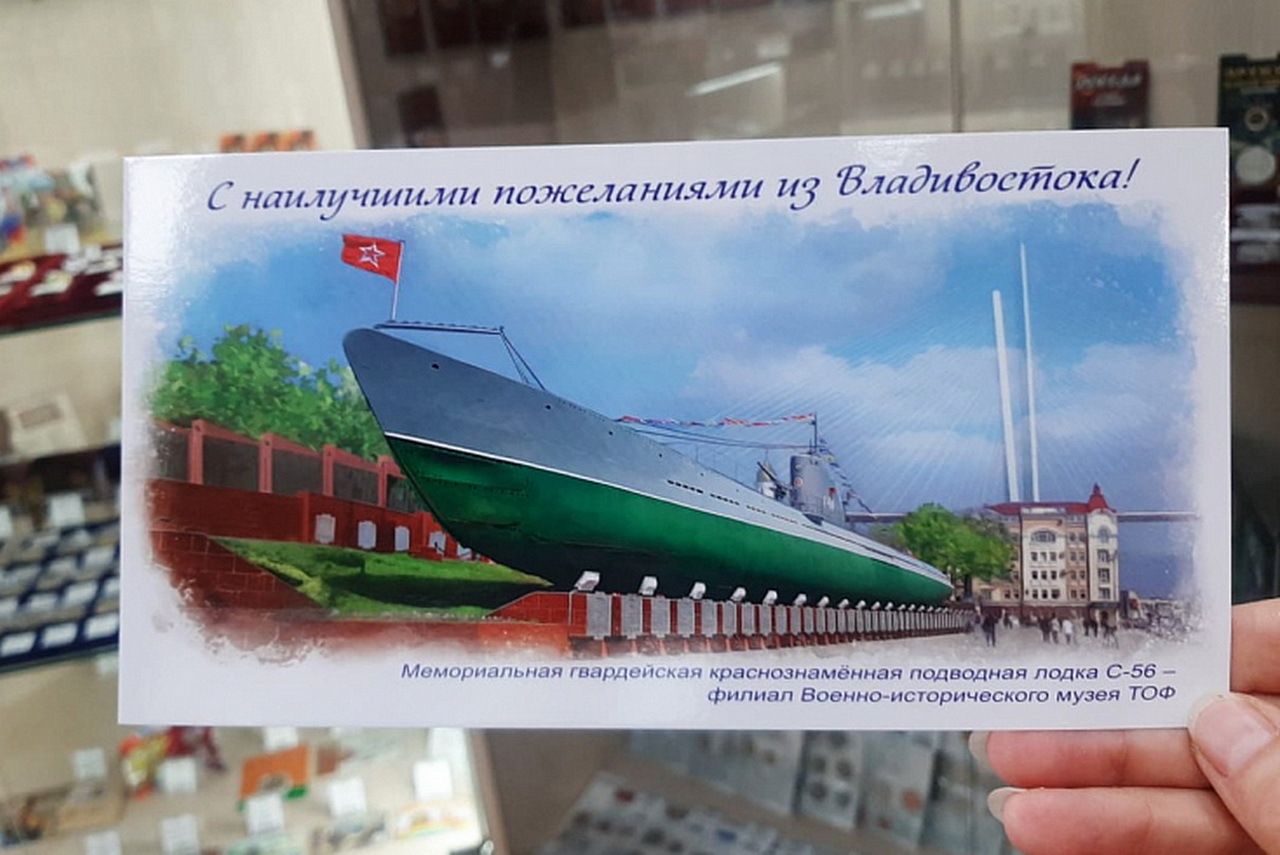 Исполнилось 50 лет со дня установки гвардейской краснознаменной подводной лодки С-56 на пьедестал в качестве судна-музея. В честь этого юбилея в приморской столице была представлена маркированная открытка с изображением легендарной подлодки.