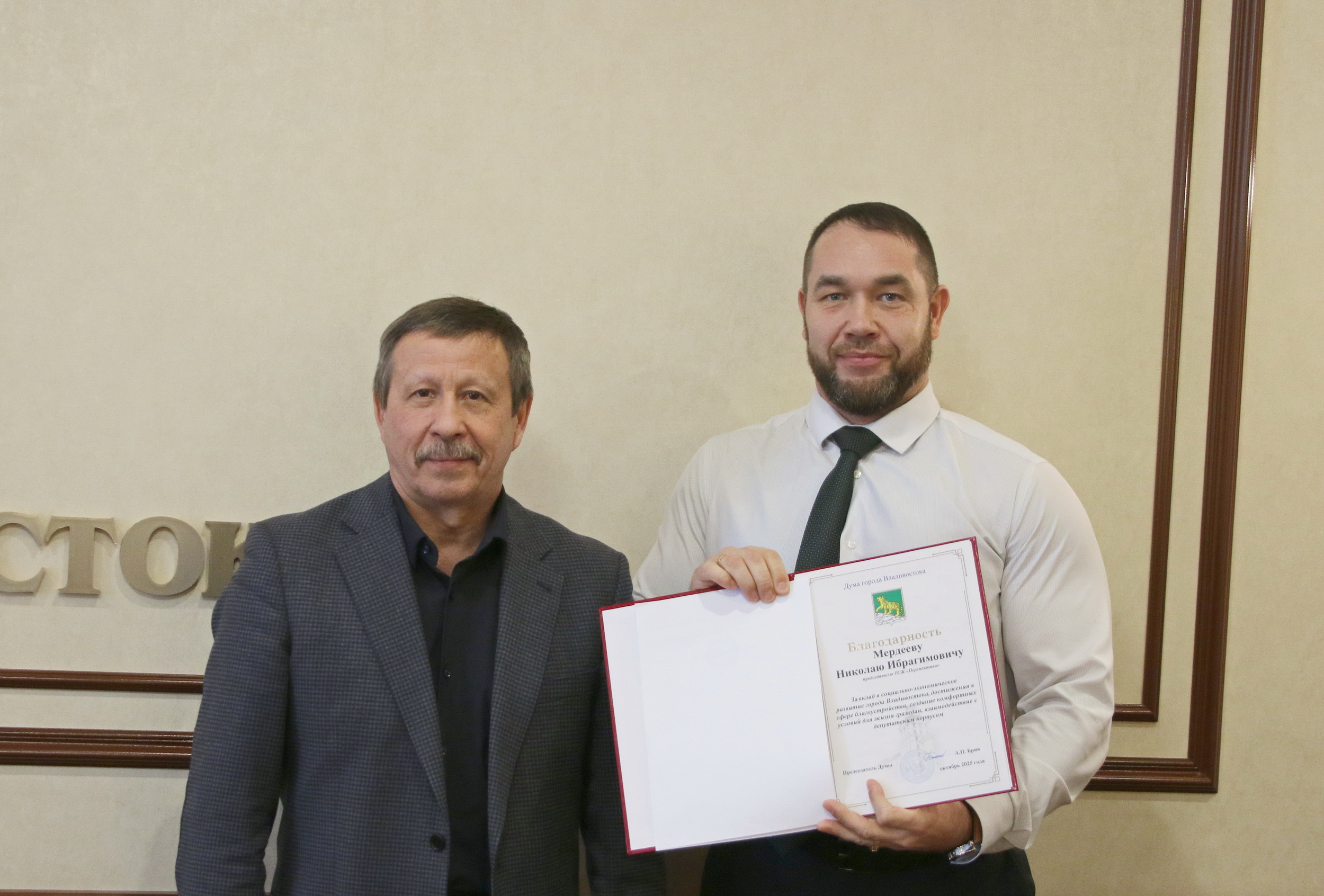 Завершилась встреча торжественным моментом: в знак благодарности за неравнодушие, активную гражданскую позицию, плодотворное сотрудничество активистам были вручены Благодарности Думы города Владивостока.