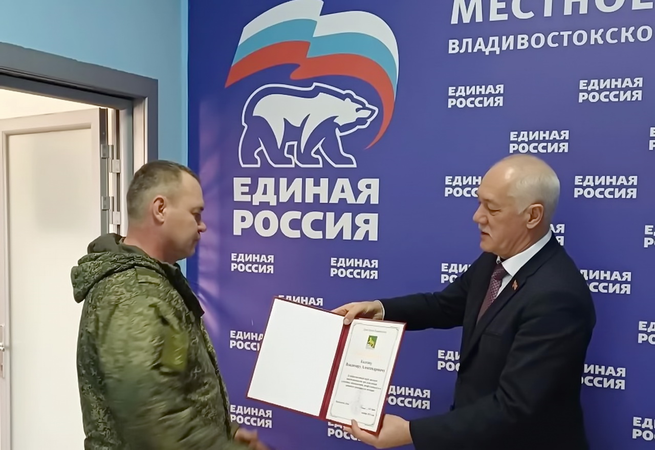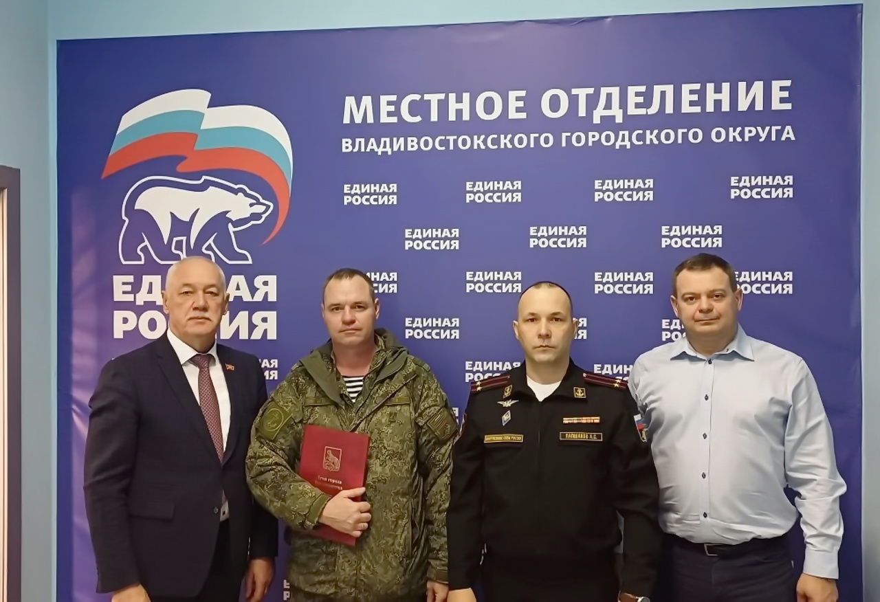 В местном отделении ВПП «Единая Россия» Владивостокского городского округа состоялась встреча с личным составом инженерно-саперного полка Тихоокеанского флота, активистами региональной общественной организации ветеранов правоохранительных органов Приморского края «Восточный форпост». За вклад в сохранение традиций патриотического воспитания молодежи, укрепление боевого духа военнослужащих руководитель РООВПО ПК «Восточный форпост» Денис Дорожкин награжден Благодарностью Думы города Владивостока.