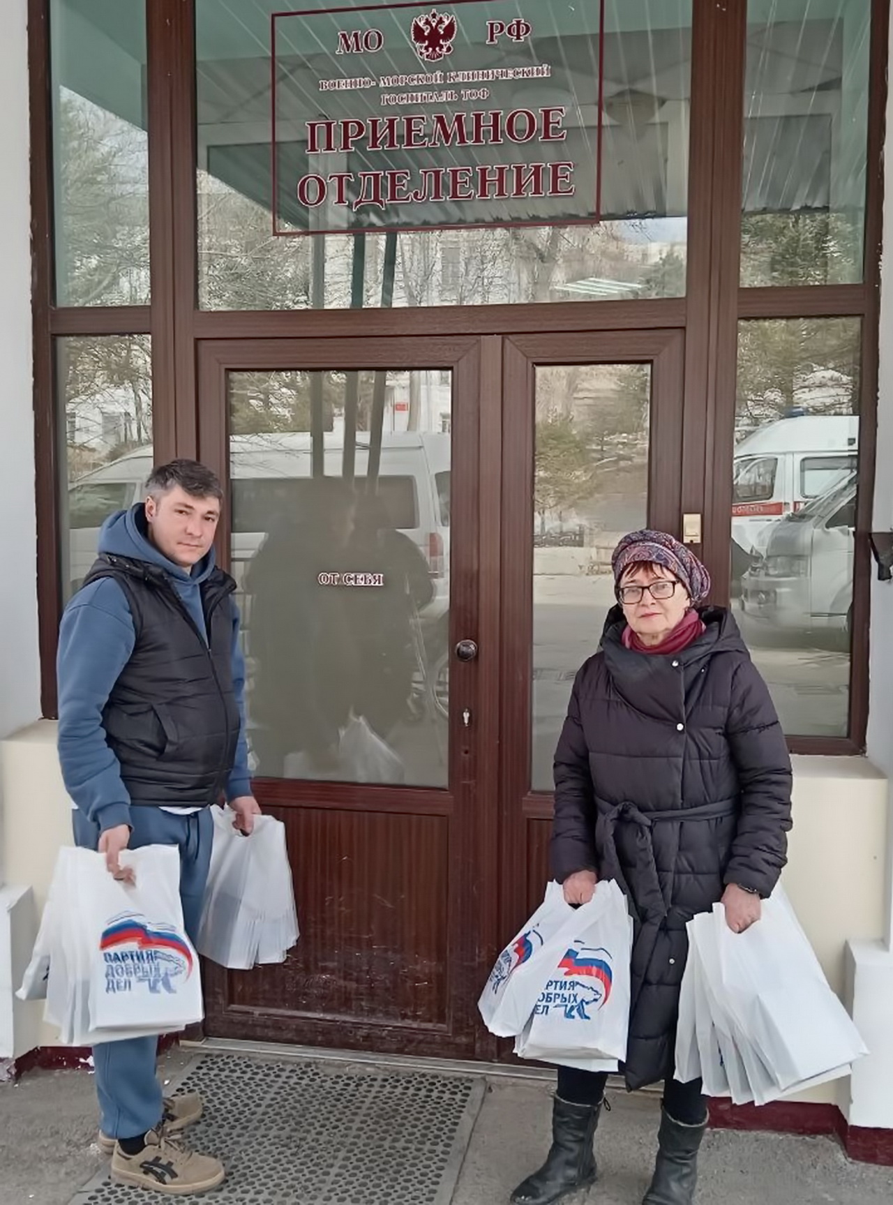 Также депутаты, активисты местного отделения «ЕР» вместе со старшим поколением волонтеров поздравили с наступающим Днем защитника Отечества пациентов военного госпиталя ТОФ. Они поблагодарили бойцов СВО, проходящих здесь реабилитацию, за мужество и героизм, проявленные на передовой, передали необходимые предметы личной гигиены и сладкие наборы.