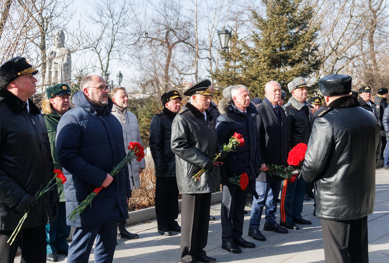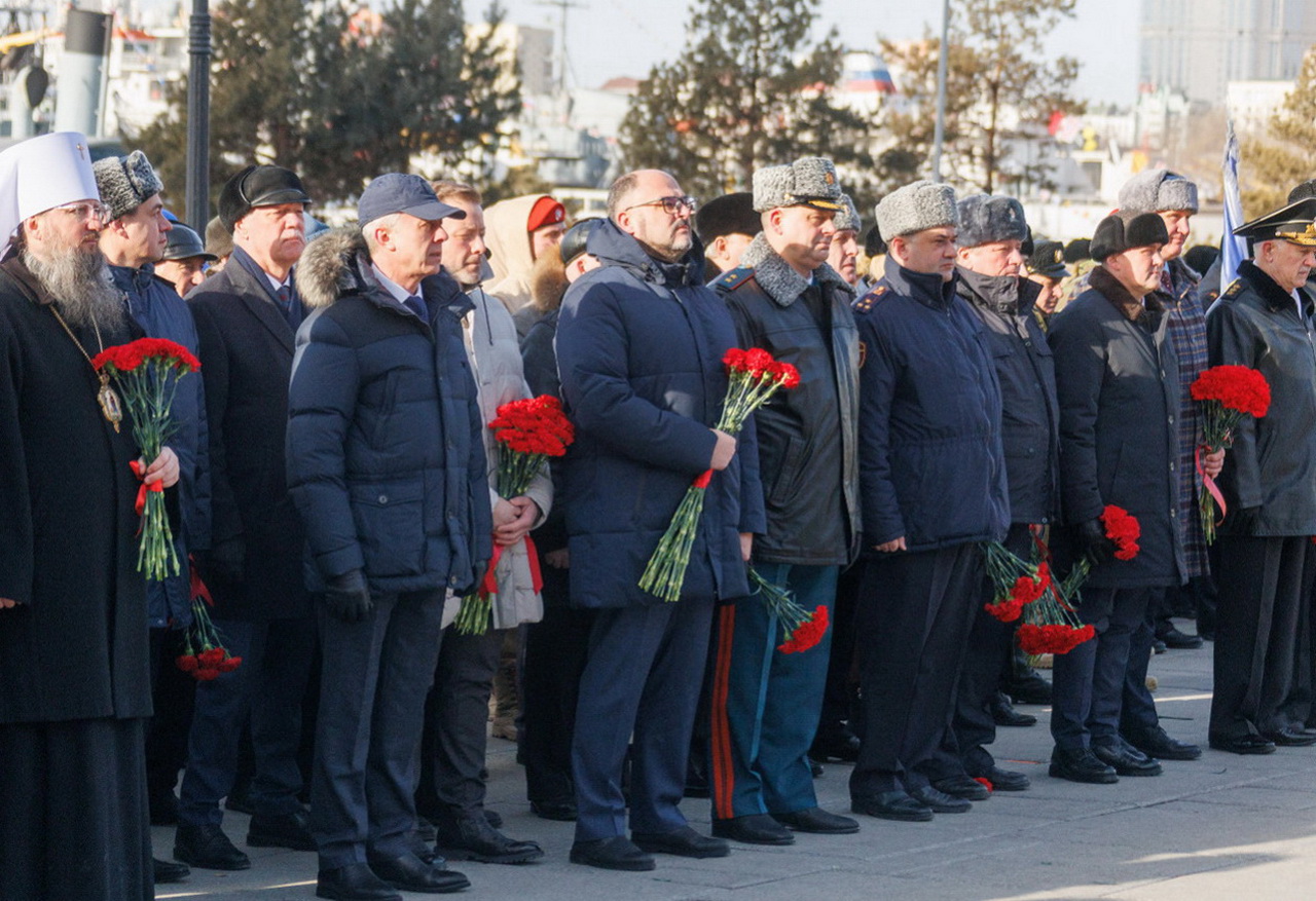 В память о защитниках Отечества состоялось возложение гирлянд и цветов к Вечному огню мемориала «Боевая слава Тихоокеанского флота». Накануне в Доме офицеров флота Губернатор Приморского края Олег Кожемяко, Командующий Тихоокеанским флотом Виктор Лиина, глава Владивостока Константин Шестаков, председатель Думы города Владивостока Андрей Брик, адмирал Константин Сиденко поздравили моряков-тихоокеaнцев с Днем защитника Отечества.