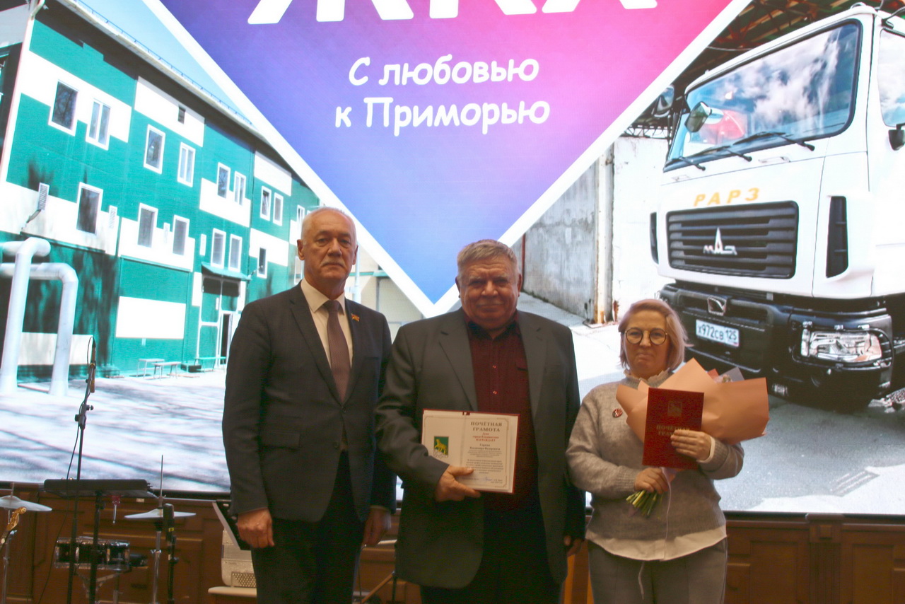 Заслуженные региональные, муниципальные и ведомственные награды лучшим работникам «Примтеплоэнерго», «Примводоканала», «Приморского экологического оператора» и других предприятий сферы ЖКХ и бытового обслуживания вручили первый вице-губернатор - председатель Правительства Приморского края Вера Щербина, председатель Законодательного Собрания края Антон Волошко, глава Владивостока Константин Шестаков, председатель Думы города Андрей Брик, заместитель председателя Правительства края Владимир Малюшицкий, министр жилищно-коммунального хозяйства края Алексей Першин, другие почетные гости.
