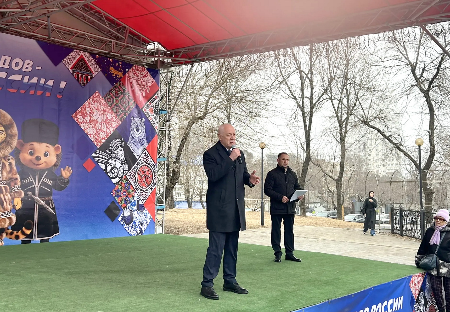 Торжественное мероприятие с участием депутатского корпуса Законодательного Собрания Приморского края и Думы города Владивостока, представителей профсоюзов, общественных, молодежных движений, ветеранских организаций, жителей и гостей приморской столицы состоялось на площадке исторического парка «Россия – моя история».