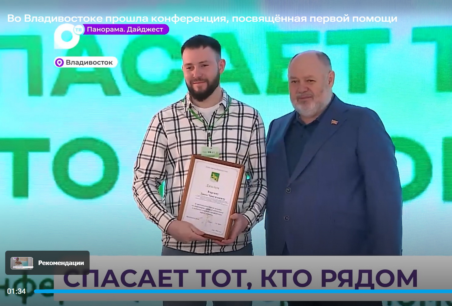 На конференции во Владивостоке депутат Вячеслав Глушко вручил награды за содействие в оказании первой помощи