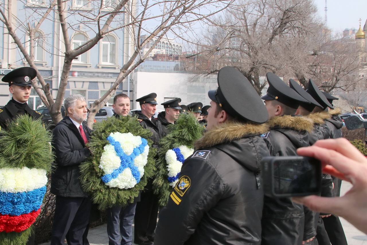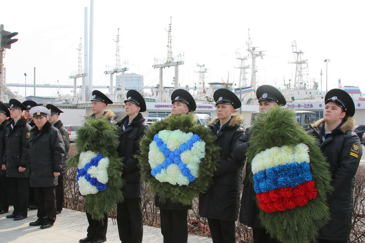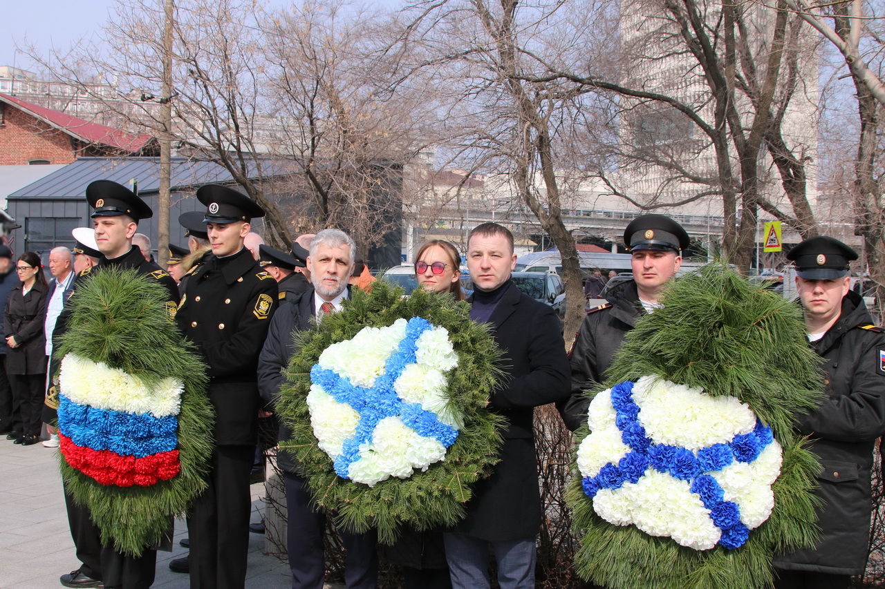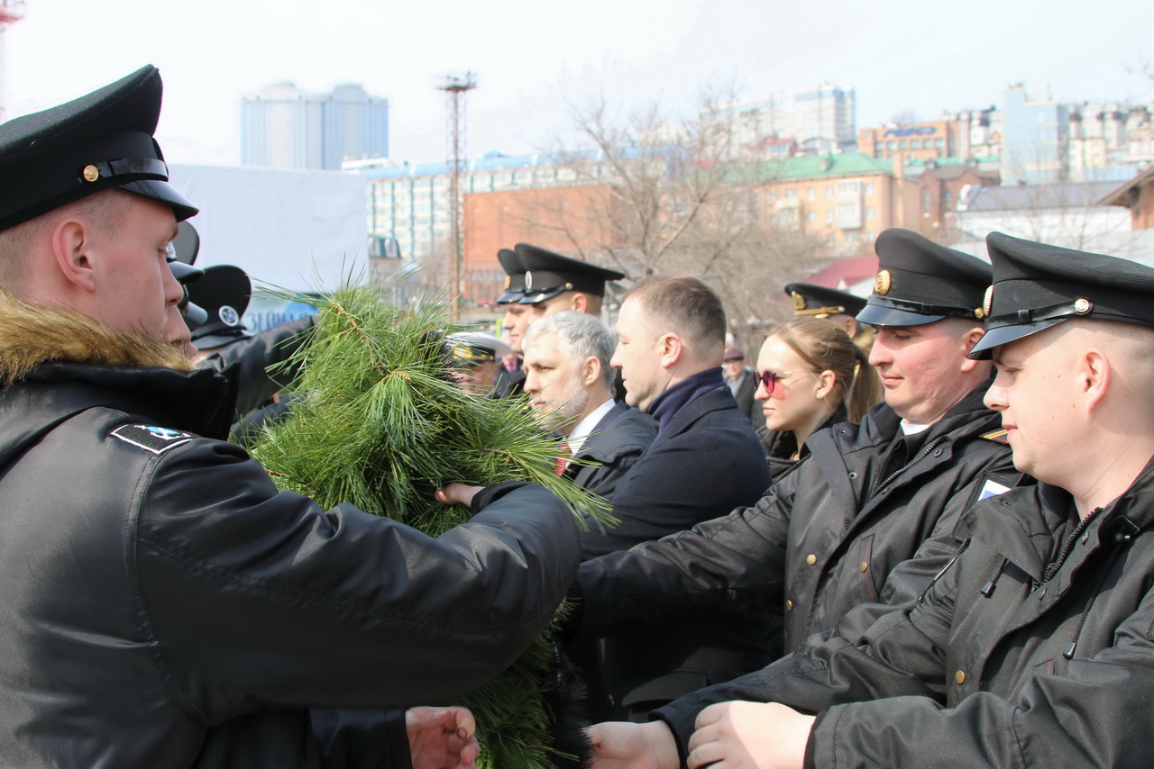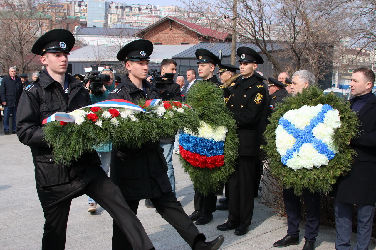 Память моряков, отстоявших славу и честь российского флота в ходе Русско-японской войны 1904-1905 годов, почтили депутат Государственной Думы Федерального Собрания РФ Владимир Новиков, исполняющий обязанности представителя МИД России во Владивостоке Евгений Волосастов, заместитель председателя Законодательного Собрания Приморского края Сергей Кузьменко, заместитель главы администрации города Владивостока Дарья Стегний, депутаты Думы города Владивостока Вячеслав Глушко, Мария Лагунова, советник председателя Думы города Владивостока Сергей Крылов, начальник филиала Нахимовского военно-морского училища Владимир Бураков, председатель регионального отделения РГО-ОИАК Алексей Буяков, председатель Владивостокского морского собрания Александр Путятин, директор группы компаний «Танира» Александр Корытко, капитаны учебных парусников «Паллада» и «Надежда» Николай Зорченко и Сергей Воробьев, ветераны, курсанты профильных вузов, нахимовцы.
