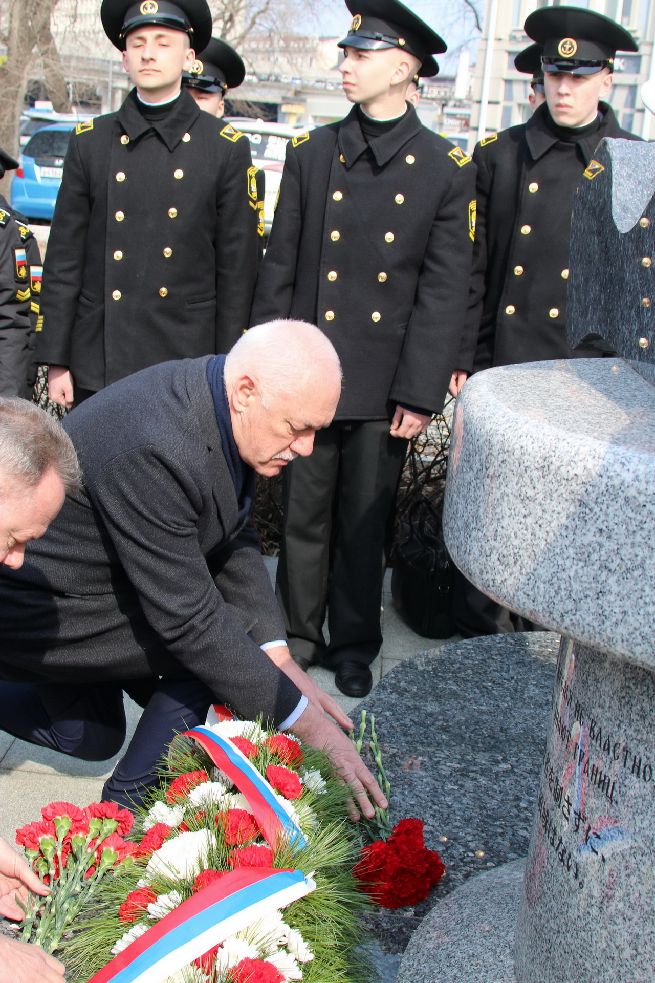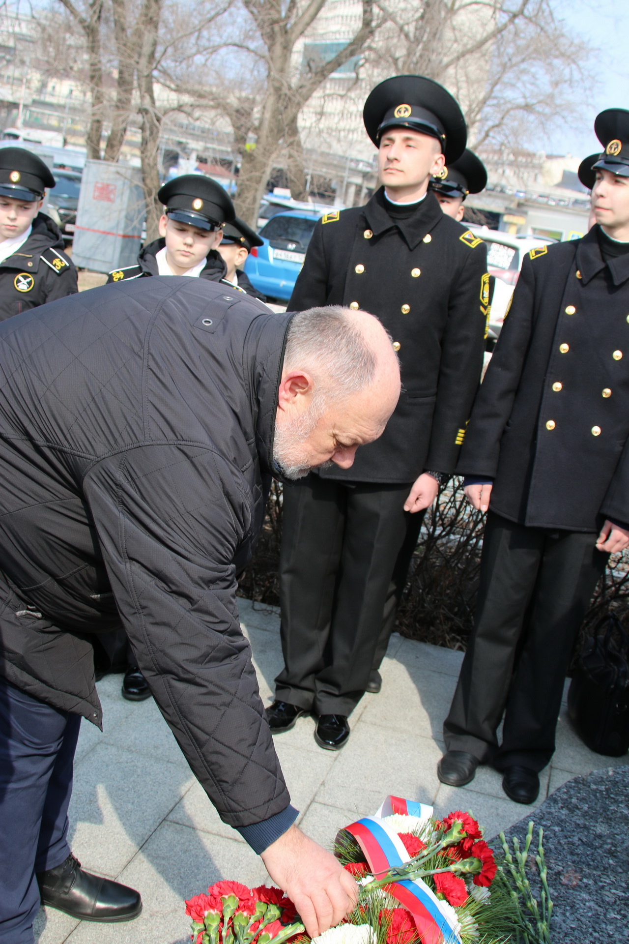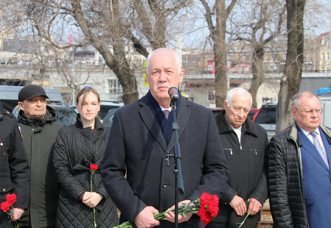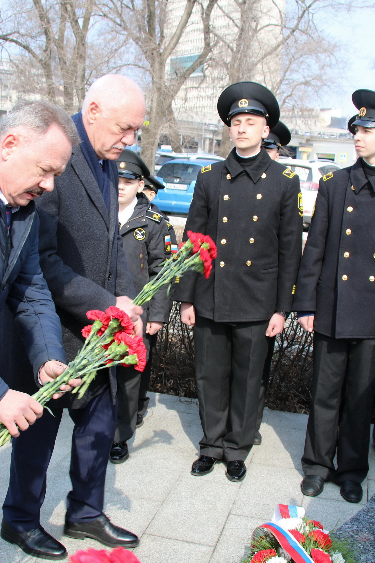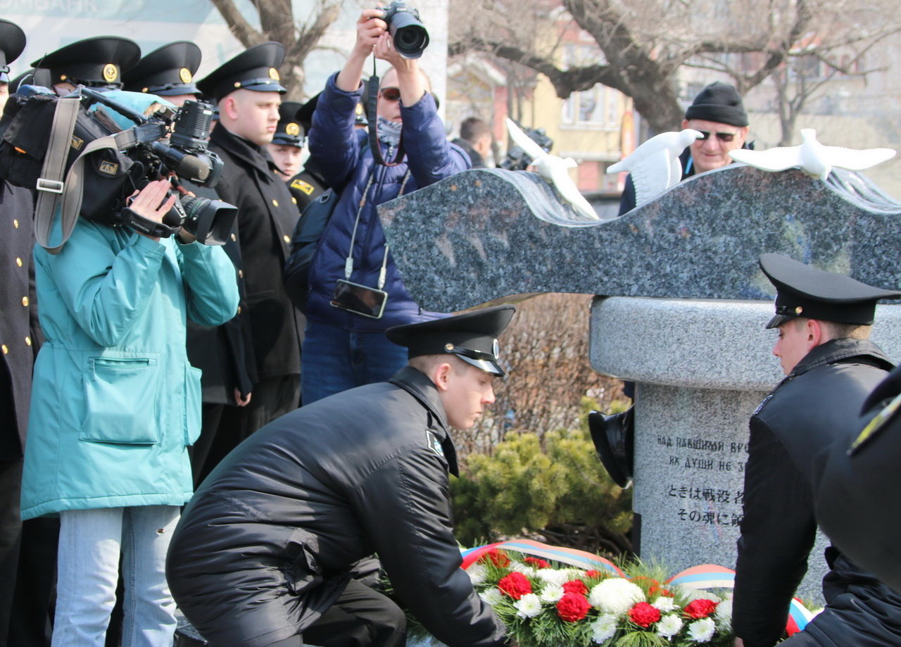 Память моряков, отстоявших славу и честь российского флота в ходе Русско-японской войны 1904-1905 годов, почтили депутат Государственной Думы Федерального Собрания РФ Владимир Новиков, исполняющий обязанности представителя МИД России во Владивостоке Евгений Волосастов, заместитель председателя Законодательного Собрания Приморского края Сергей Кузьменко, заместитель главы администрации города Владивостока Дарья Стегний, депутаты Думы города Владивостока Вячеслав Глушко, Мария Лагунова, советник председателя Думы города Владивостока Сергей Крылов, начальник филиала Нахимовского военно-морского училища Владимир Бураков, председатель регионального отделения РГО-ОИАК Алексей Буяков, председатель Владивостокского морского собрания Александр Путятин, директор группы компаний «Танира» Александр Корытко, капитаны учебных парусников «Паллада» и «Надежда» Николай Зорченко и Сергей Воробьев, ветераны, курсанты профильных вузов, нахимовцы.