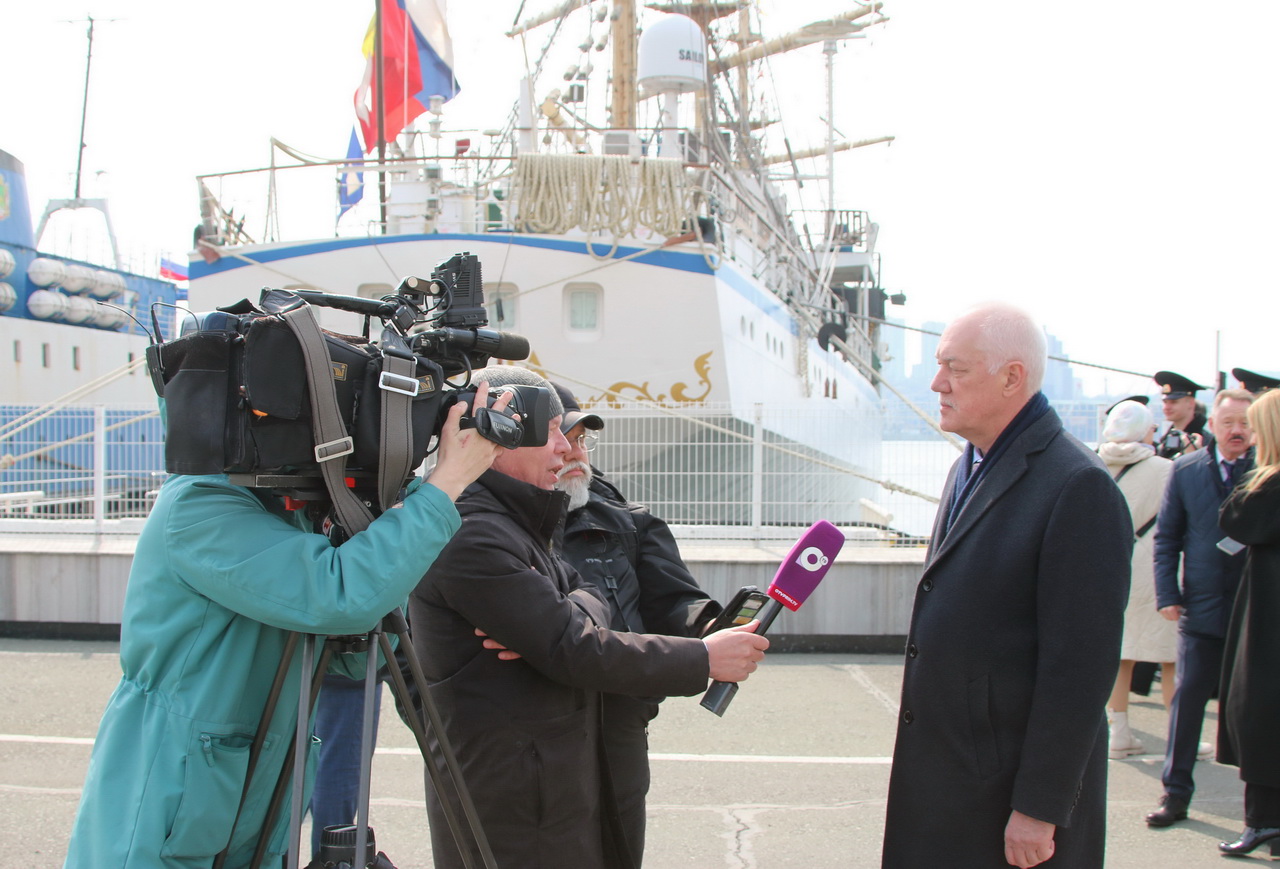 Обращаясь к участникам мероприятия, состоявшегося у 30-го причала, председатель Думы города Владивостока Андрей Брик акцентировал, что при поддержке депутатского корпуса всех уровней церемония торжественных проводов в рейс учебных парусников «Паллада» и «Надежда» является для приморской столицы доброй традицией и сопровождается возложением венков и цветов к памятному знаку героям Цусимского морского сражения.