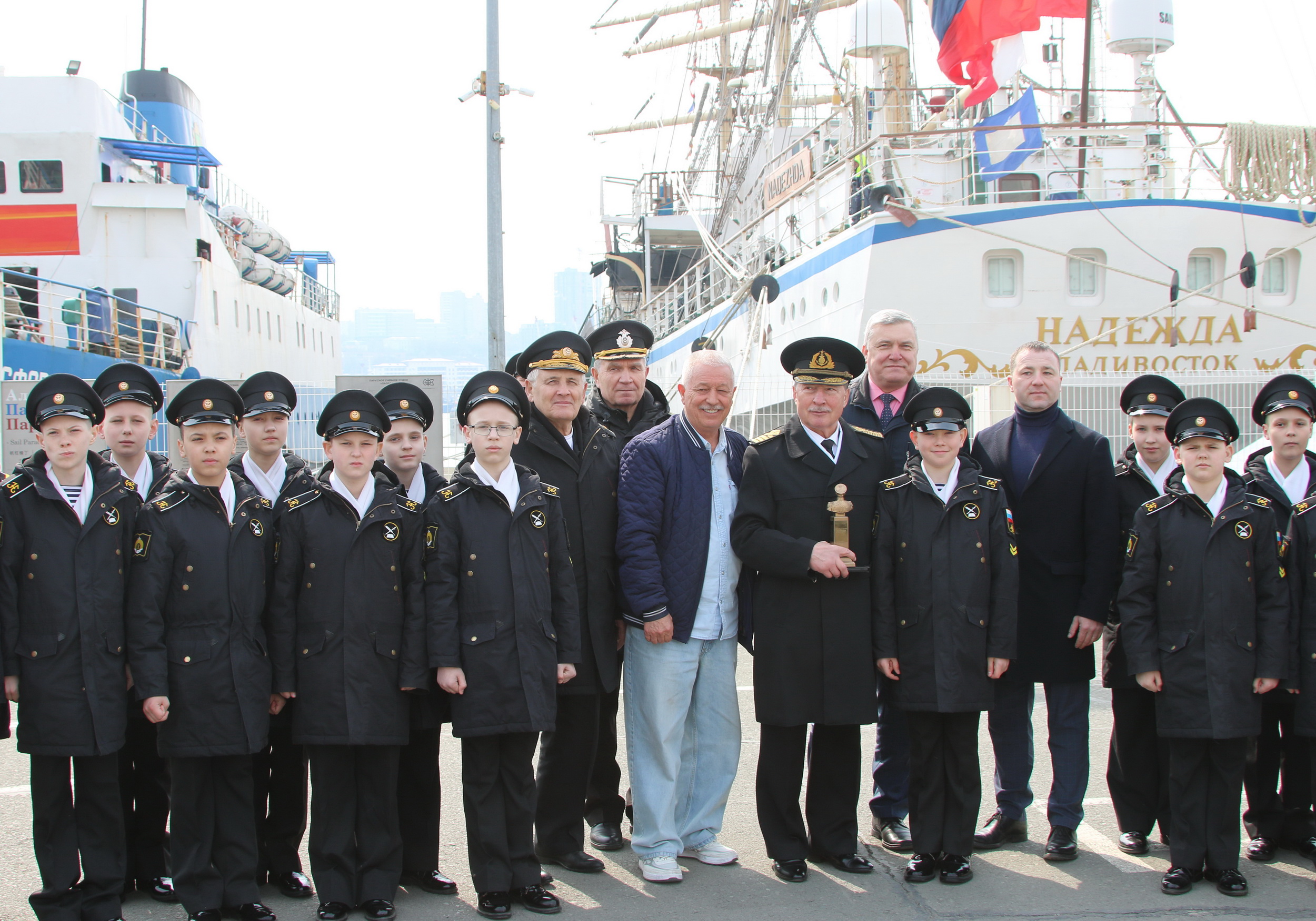 Депутаты Думы Владивостока Денис Русинов и Станислав Примаченко передали курсантам «Паллады» от Думы города Владивостока, военнослужащих отдельного морского инженерного полка Тихоокеанского флота, Владивостокского морского собрания памятный венок, который во время рейса будет торжественно спущен на воду в Корейском проливе, в месте гибели героев Цусимского сражения.