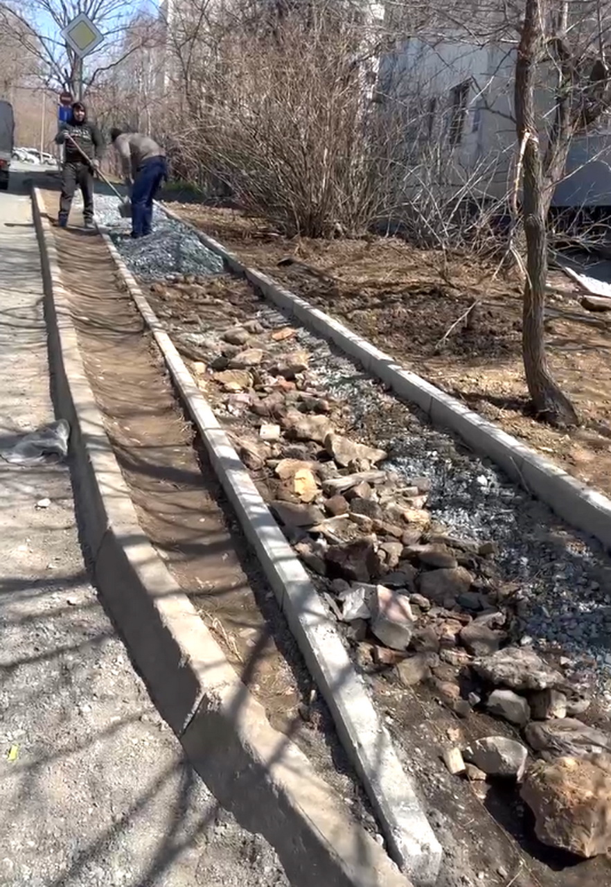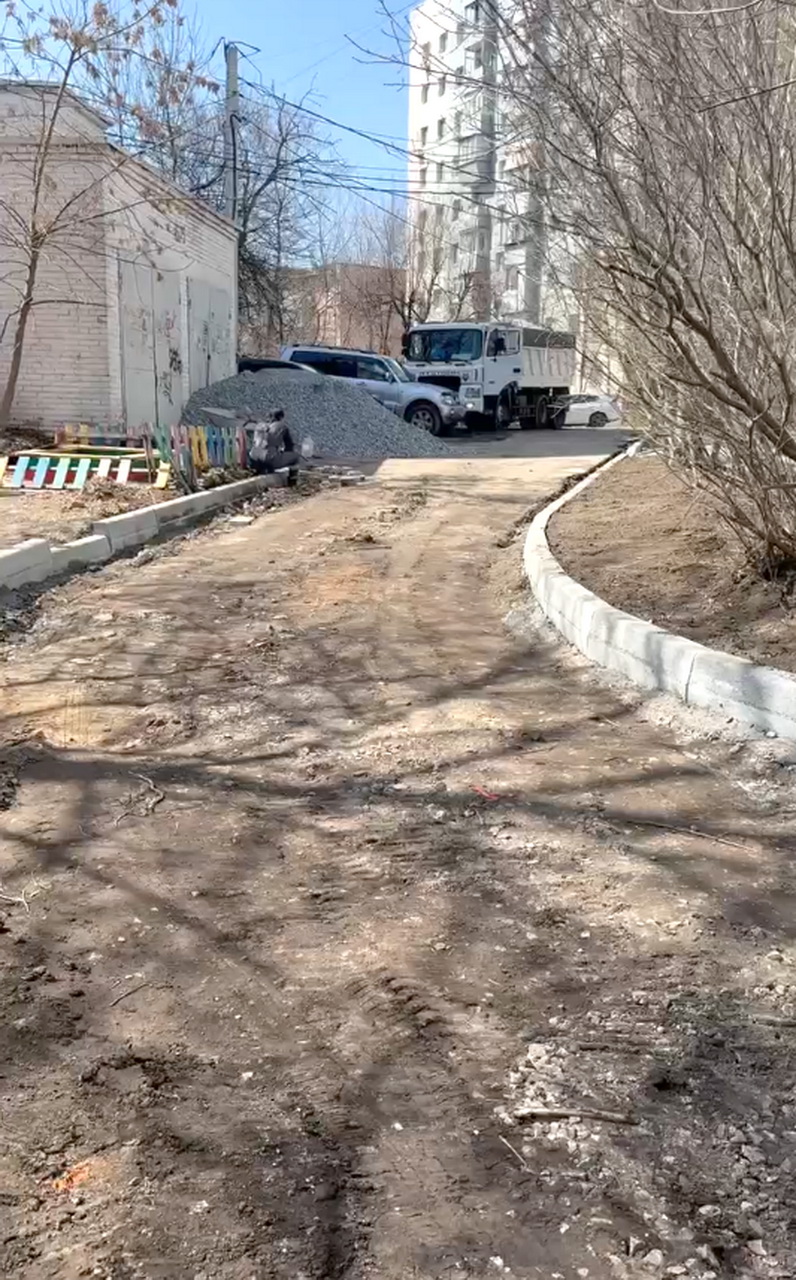 Депутат Думы города Владивостока Денис Русинов осмотрел, как благоустраивают территорию рядом с жилым домом по адресу проспект 100-летия Владивостока, 124.