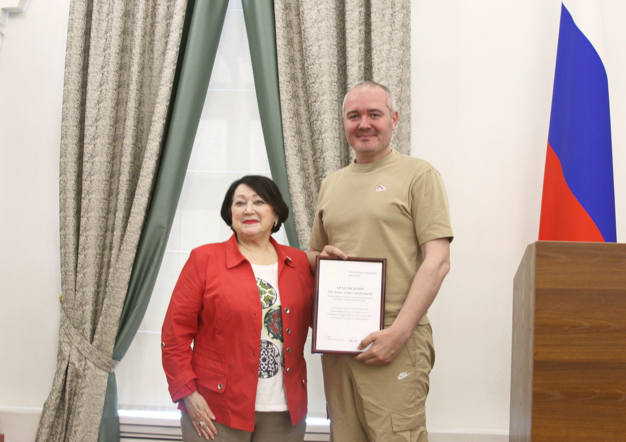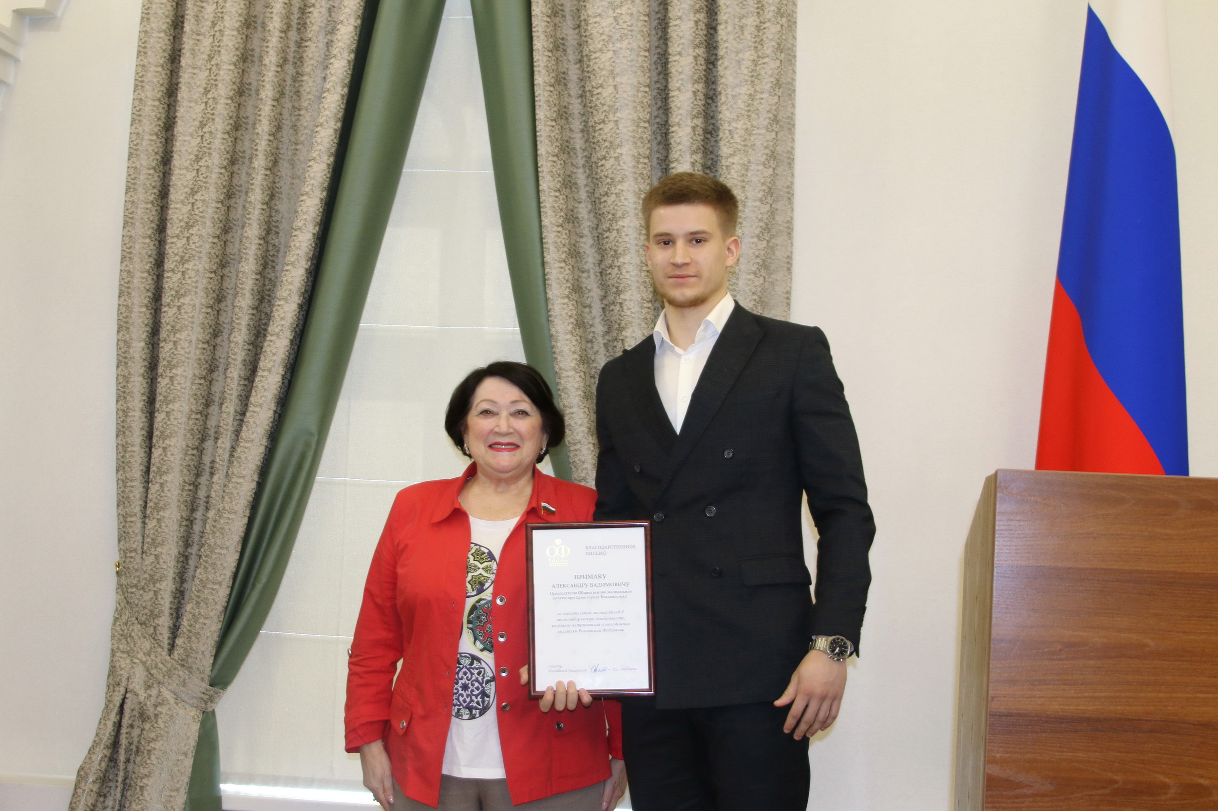За вклад в укрепление традиций патриотизма, развитие молодежной политики сенатор Людмила Талабаева вручила Благодарственные письма председателю Общественной молодежной палаты при Думе города Владивостока Александру Примаку, члену палаты Руслану Красовскому, а также передала награду для общественного деятеля, правозащитника Алены Нестреляй.