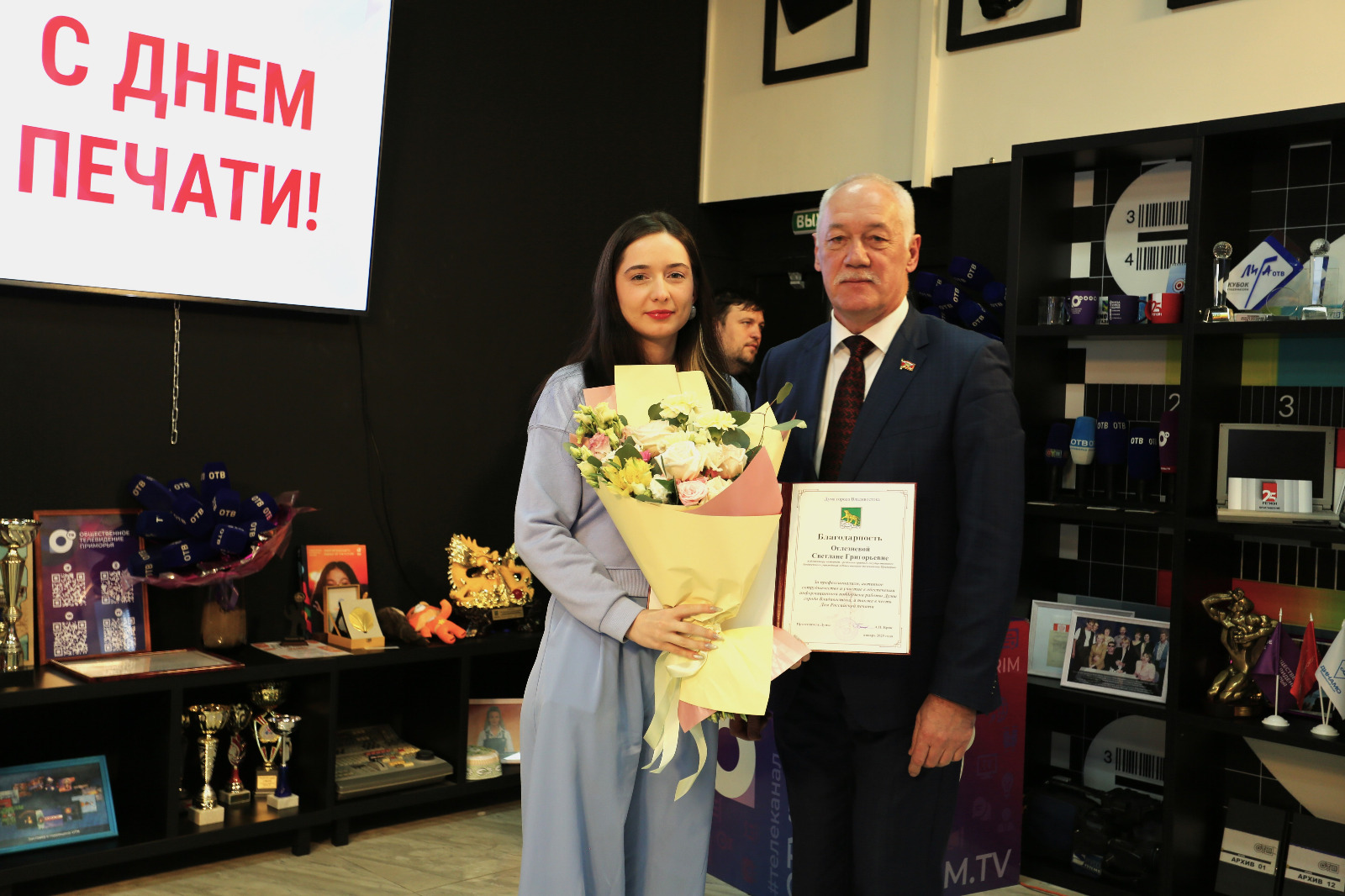 Андрей Брик вручил награды Думы города Владивостока сотрудникам Общественного телевидения Приморья